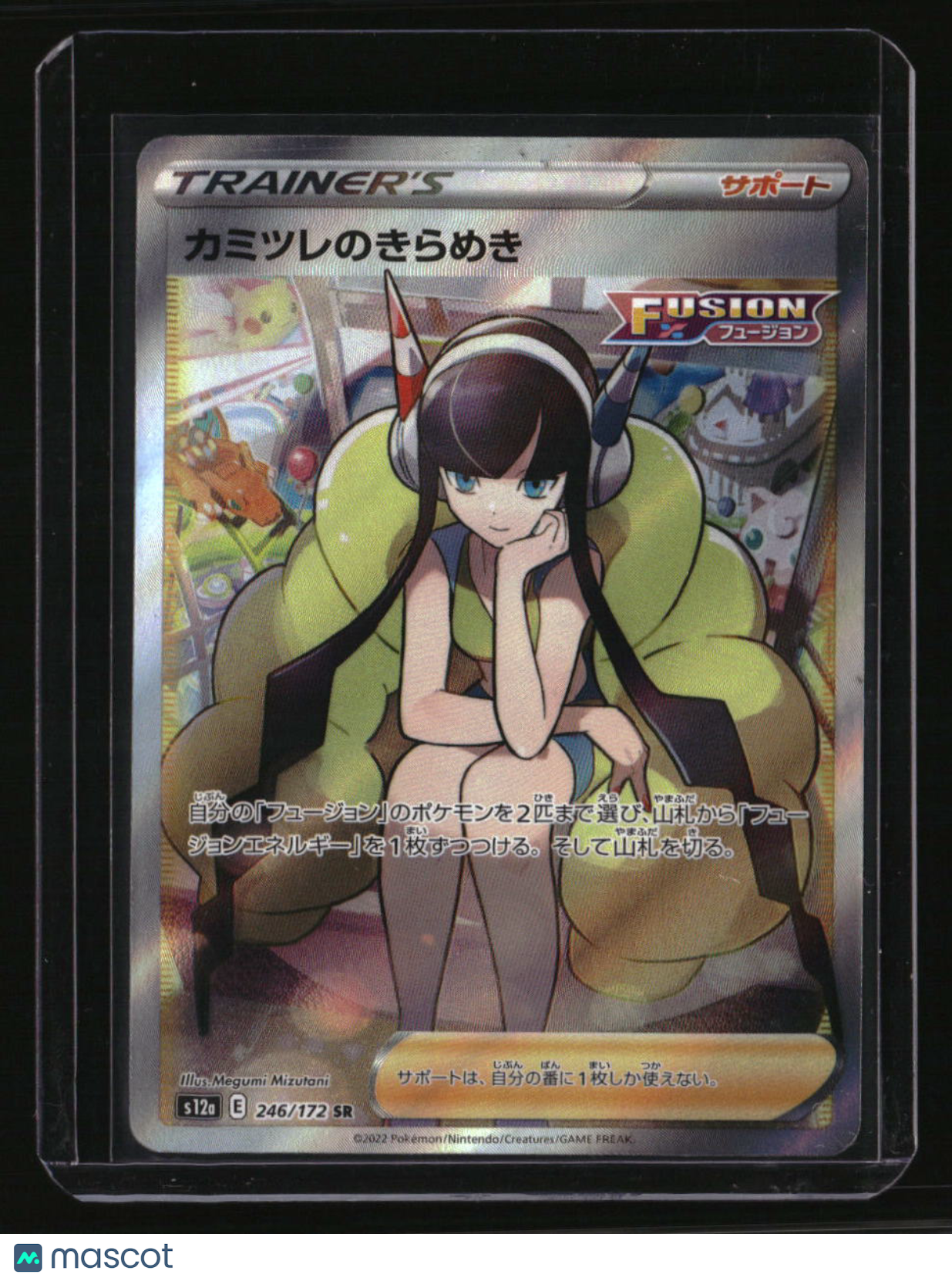 | *This is a Single Trading Card* | *Discounts are not available on Single Trading Cards* | This is a nice example of a S12a: VSTAR Universe #246/172 Elesa's Sparkle Super Rare. Please check out our other listings for more great cards. Thank you for your interest in one of our cards!!! Prior to making any bids/purchases, I would kindly ask you to read the information below: Item Condition Please see the provided pictures for the condition of the card or item, pictures of the front and back are provided for your review. We cannot accommodate requests for additional pictures. Any notable flaws or damage to this item will be noted in this listing. Please use the attached photos provided for your own assessment. Graded card cases may come with some minor wear/tear, surface scratch, chipped, or blemish. There are no partial refunds or returns because of the case condition. All single cards will come in protective cases. If you purchase a listing that's sold as a lot it may come in snap cases or sealed in a team bag, and not all cards will be individually sleeved and top loaded in all lots. Raw cards are sold as such, with no guarantees of potential and/or expected grades. All cards are sold as is, with no returns or refunds. Listed With Mascot.