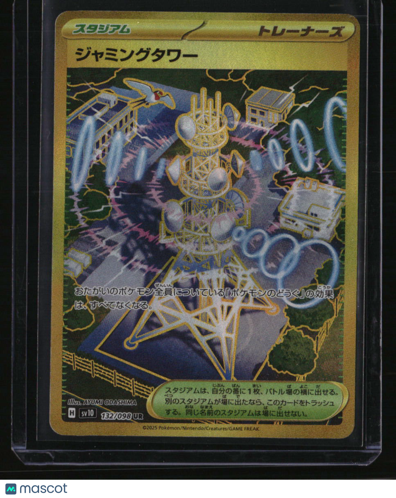 | *This is a Single Trading Card* | *Discounts are not available on Single Trading Cards* | This is a nice example of a SV10: The Glory of Team Rocket #132/098 Jamming Tower Ultra Rare. Please check out our other listings for more great cards. Thank you for your interest in one of our cards!!! Prior to making any bids/purchases, I would kindly ask you to read the information below: Item Condition Please see the provided pictures for the condition of the card or item, pictures of the front and back are provided for your review. We cannot accommodate requests for additional pictures. Any notable flaws or damage to this item will be noted in this listing. Please use the attached photos provided for your own assessment. Graded card cases may come with some minor wear/tear, surface scratch, chipped, or blemish. There are no partial refunds or returns because of the case condition. All single cards will come in protective cases. If you purchase a listing that's sold as a lot it may come in snap cases or sealed in a team bag, and not all cards will be individually sleeved and top loaded in all lots. Raw cards are sold as such, with no guarantees of potential and/or expected grades. All cards are sold as is, with no returns or refunds. Listed With Mascot.