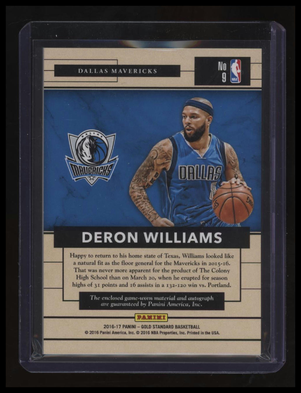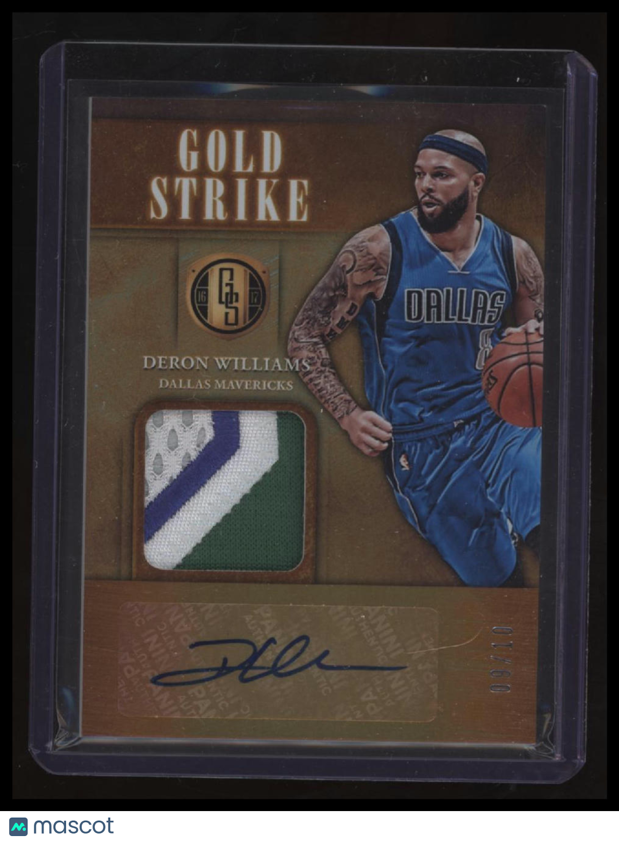 | *This is a Single Trading Card* | *Discounts are not available on Single Trading Cards* | This is a nice example of a 2016-17 Panini Gold Standard #9 Deron Williams Gold Strike Signatures Prime SN,MEM,AU. Please check out our other listings for more great cards. Thank you for your interest in one of our cards!!! Prior to making any bids/purchases, I would kindly ask you to read the information below: Item Condition Please see the provided pictures for the condition of the card or item, pictures of the front and back are provided for your review. We cannot accommodate requests for additional pictures. Any notable flaws or damage to this item will be noted in this listing. Please use the attached photos provided for your own assessment. Graded card cases may come with some minor wear/tear, surface scratch, chipped, or blemish. There are no partial refunds or returns because of the case condition. All single cards will come in protective cases. If you purchase a listing that's sold as a lot it may come in snap cases or sealed in a team bag, and not all cards will be individually sleeved and top loaded in all lots. Raw cards are sold as such, with no guarantees of potential and/or expected grades. All cards are sold as is, with no returns or refunds. Listed With Mascot.