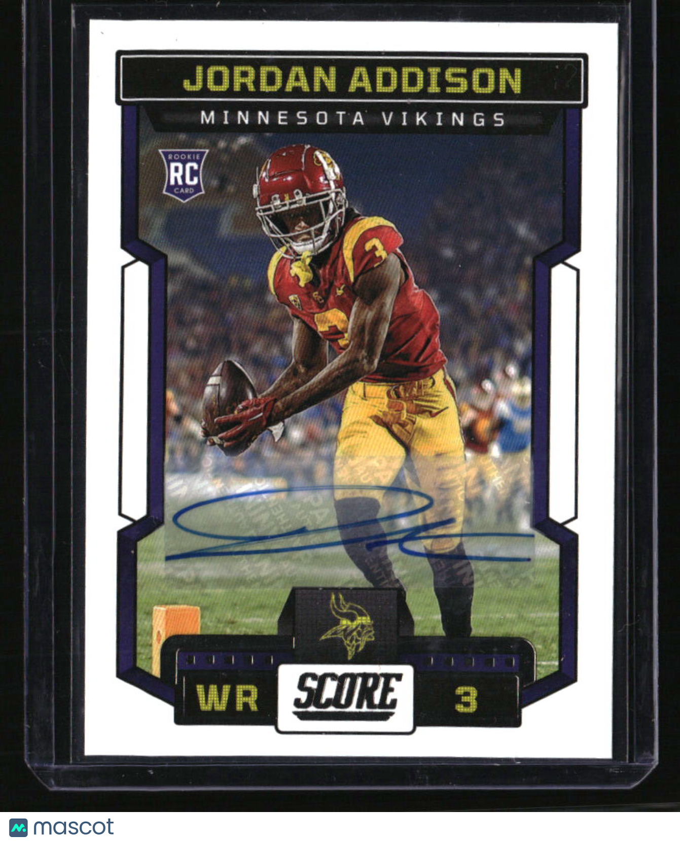 | *This is a Single Trading Card* | *Discounts are not available on Single Trading Cards* | This is a nice example of a 2023 Score #346 Jordan Addison Signatures AU. Please check out our other listings for more great cards. Thank you for your interest in one of our cards!!! Prior to making any bids/purchases, I would kindly ask you to read the information below: Item Condition Please see the provided pictures for the condition of the card or item, pictures of the front and back are provided for your review. We cannot accommodate requests for additional pictures. Any notable flaws or damage to this item will be noted in this listing. Please use the attached photos provided for your own assessment. Graded card cases may come with some minor wear/tear, surface scratch, chipped, or blemish. There are no partial refunds or returns because of the case condition. All single cards will come in protective cases. If you purchase a listing that's sold as a lot it may come in snap cases or sealed in a team bag, and not all cards will be individually sleeved and top loaded in all lots. Raw cards are sold as such, with no guarantees of potential and/or expected grades. All cards are sold as is, with no returns or refunds. Listed With Mascot.