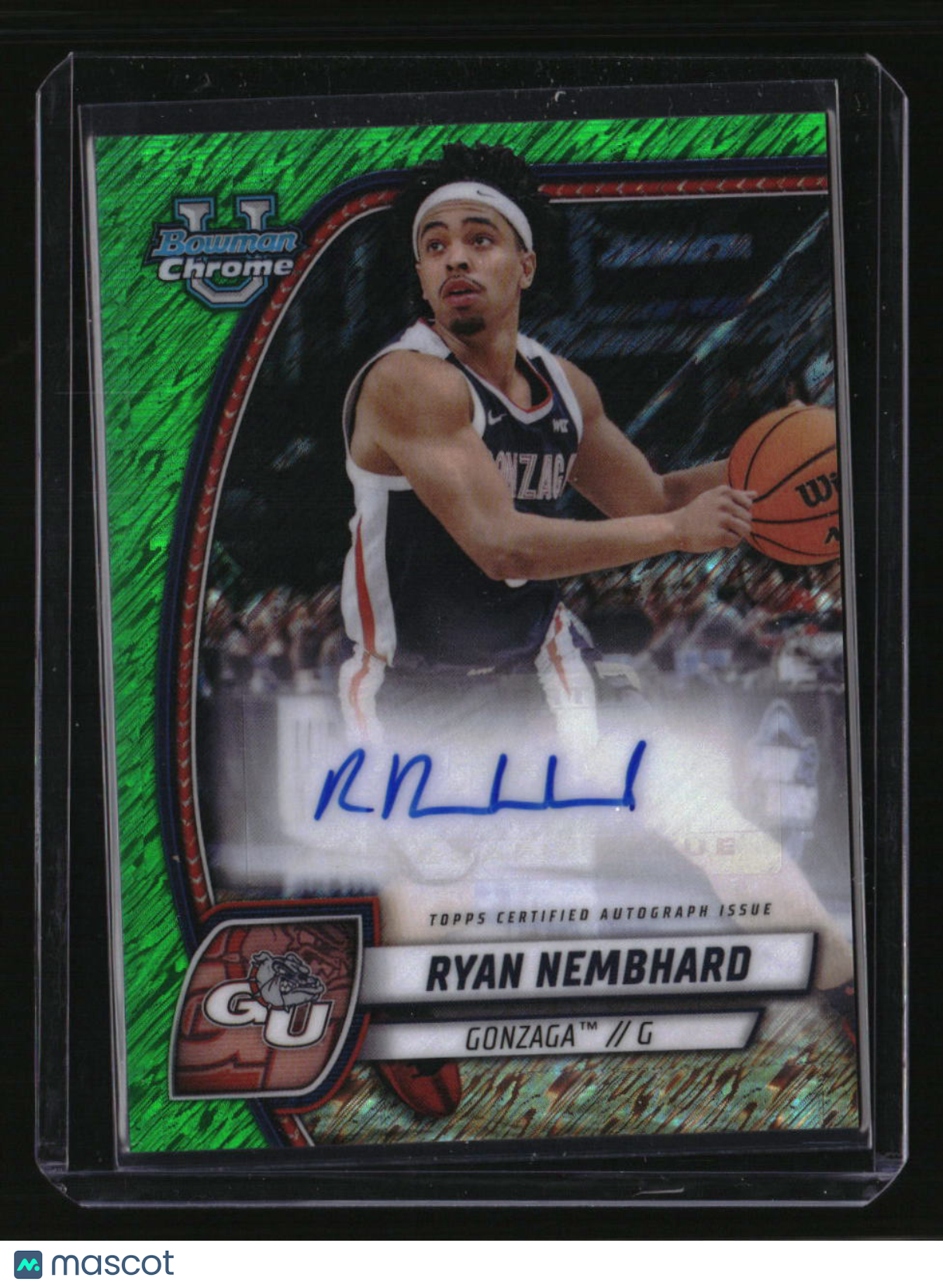 | *This is a Single Trading Card* | *Discounts are not available on Single Trading Cards* | This is a nice example of a 2024-25 Bowman University Chrome #72 Ryan Nembhard Prospects Autographs Green Shimmer Refractor AU. Please check out our other listings for more great cards. Thank you for your interest in one of our cards!!! Prior to making any bids/purchases, I would kindly ask you to read the information below: Item Condition Please see the provided pictures for the condition of the card or item, pictures of the front and back are provided for your review. We cannot accommodate requests for additional pictures. Any notable flaws or damage to this item will be noted in this listing. Please use the attached photos provided for your own assessment. Graded card cases may come with some minor wear/tear, surface scratch, chipped, or blemish. There are no partial refunds or returns because of the case condition. All single cards will come in protective cases. If you purchase a listing that's sold as a lot it may come in snap cases or sealed in a team bag, and not all cards will be individually sleeved and top loaded in all lots. Raw cards are sold as such, with no guarantees of potential and/or expected grades. All cards are sold as is, with no returns or refunds. Listed With Mascot.