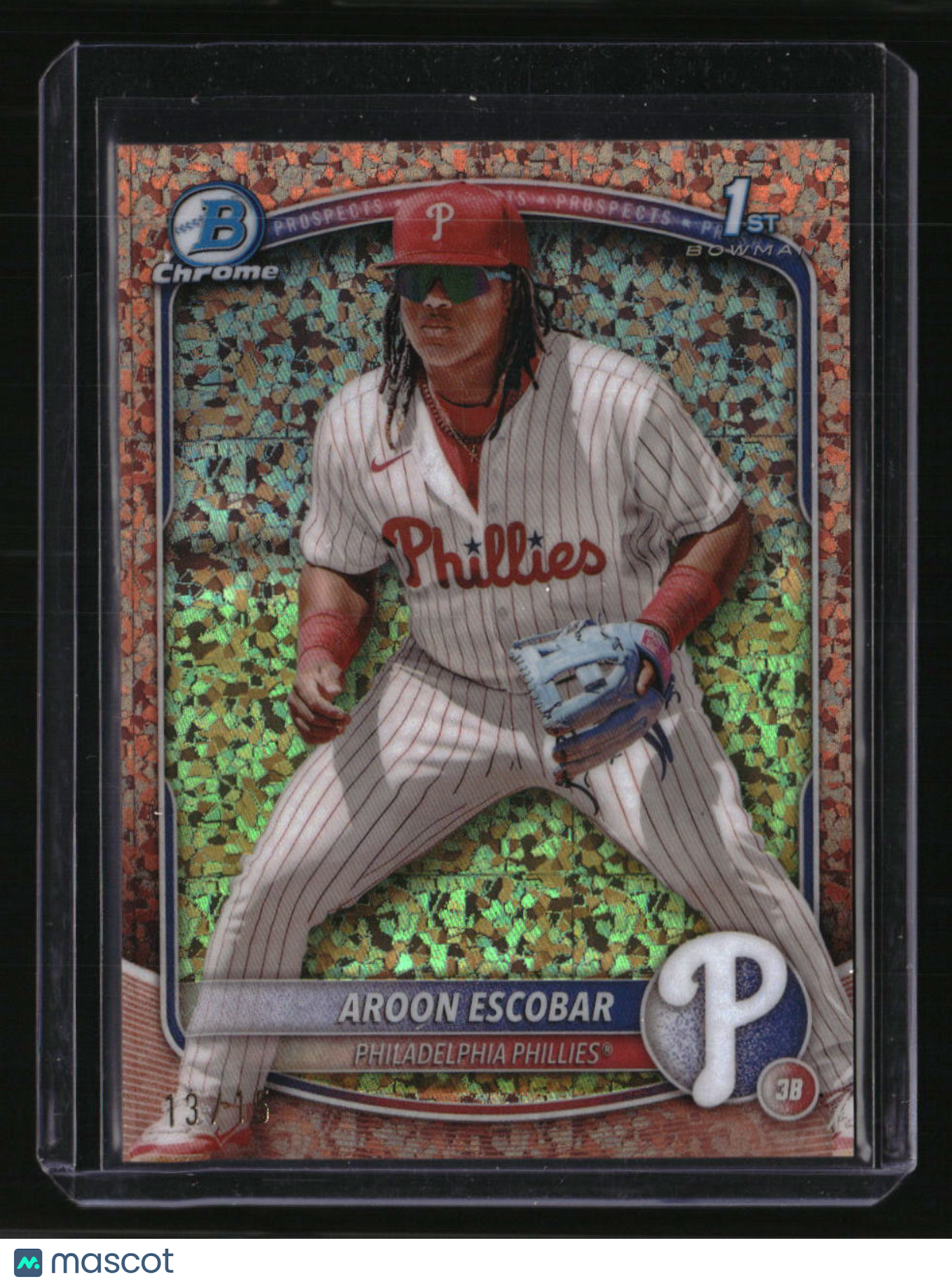 | *This is a Single Trading Card* | *Discounts are not available on Single Trading Cards* | This is a nice example of a 2025 Bowman #BCP-65 Aroon Escobar Chrome Prospects Rose Gold Mini Diamond Refractor SN. Please check out our other listings for more great cards. Thank you for your interest in one of our cards!!! Prior to making any bids/purchases, I would kindly ask you to read the information below: Item Condition Please see the provided pictures for the condition of the card or item, pictures of the front and back are provided for your review. We cannot accommodate requests for additional pictures. Any notable flaws or damage to this item will be noted in this listing. Please use the attached photos provided for your own assessment. Graded card cases may come with some minor wear/tear, surface scratch, chipped, or blemish. There are no partial refunds or returns because of the case condition. All single cards will come in protective cases. If you purchase a listing that's sold as a lot it may come in snap cases or sealed in a team bag, and not all cards will be individually sleeved and top loaded in all lots. Raw cards are sold as such, with no guarantees of potential and/or expected grades. All cards are sold as is, with no returns or refunds. Listed With Mascot.