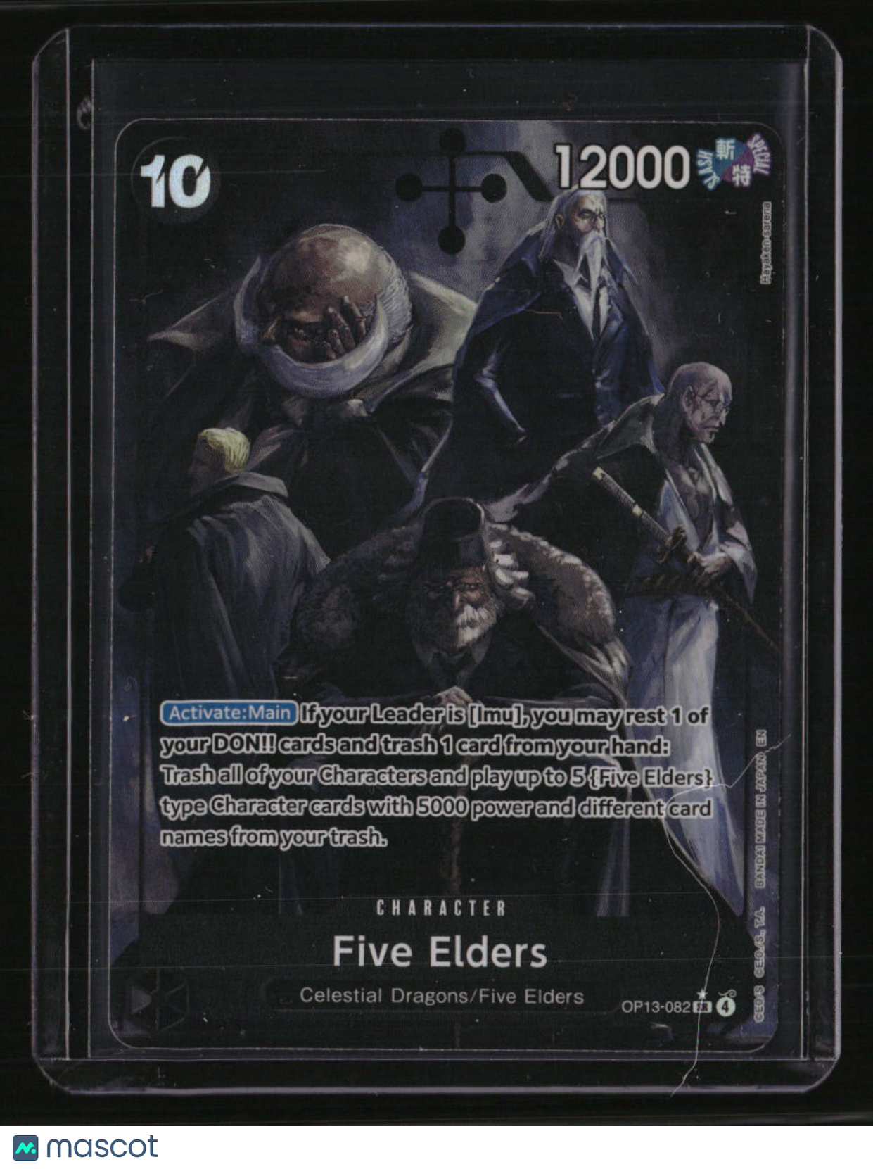 | *This is a Single Trading Card* | *Discounts are not available on Single Trading Cards* | This is a nice example of a Carrying on His Will #OP09-004 Five Elders (Alternate Art) Super Rare. Please check out our other listings for more great cards. Thank you for your interest in one of our cards!!! Prior to making any bids/purchases, I would kindly ask you to read the information below: Item Condition Please see the provided pictures for the condition of the card or item, pictures of the front and back are provided for your review. We cannot accommodate requests for additional pictures. Any notable flaws or damage to this item will be noted in this listing. Please use the attached photos provided for your own assessment. Graded card cases may come with some minor wear/tear, surface scratch, chipped, or blemish. There are no partial refunds or returns because of the case condition. All single cards will come in protective cases. If you purchase a listing that's sold as a lot it may come in snap cases or sealed in a team bag, and not all cards will be individually sleeved and top loaded in all lots. Raw cards are sold as such, with no guarantees of potential and/or expected grades. All cards are sold as is, with no returns or refunds. Listed With Mascot.