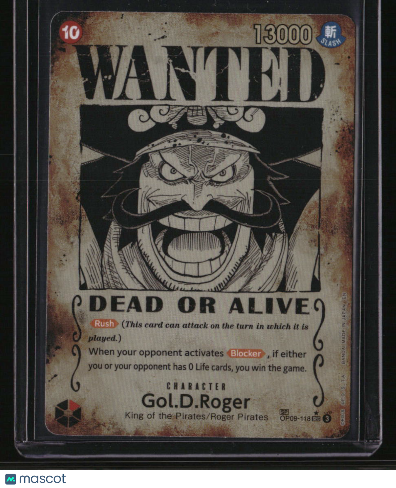 | *This is a Single Trading Card* | *Discounts are not available on Single Trading Cards* | This is a nice example of a Carrying on His Will #OP09-093 Gol.D.Roger (118) (Wanted Poster) Super Rare. Please check out our other listings for more great cards. Thank you for your interest in one of our cards!!! Prior to making any bids/purchases, I would kindly ask you to read the information below: Item Condition Please see the provided pictures for the condition of the card or item, pictures of the front and back are provided for your review. We cannot accommodate requests for additional pictures. Any notable flaws or damage to this item will be noted in this listing. Please use the attached photos provided for your own assessment. Graded card cases may come with some minor wear/tear, surface scratch, chipped, or blemish. There are no partial refunds or returns because of the case condition. All single cards will come in protective cases. If you purchase a listing that's sold as a lot it may come in snap cases or sealed in a team bag, and not all cards will be individually sleeved and top loaded in all lots. Raw cards are sold as such, with no guarantees of potential and/or expected grades. All cards are sold as is, with no returns or refunds. Listed With Mascot.