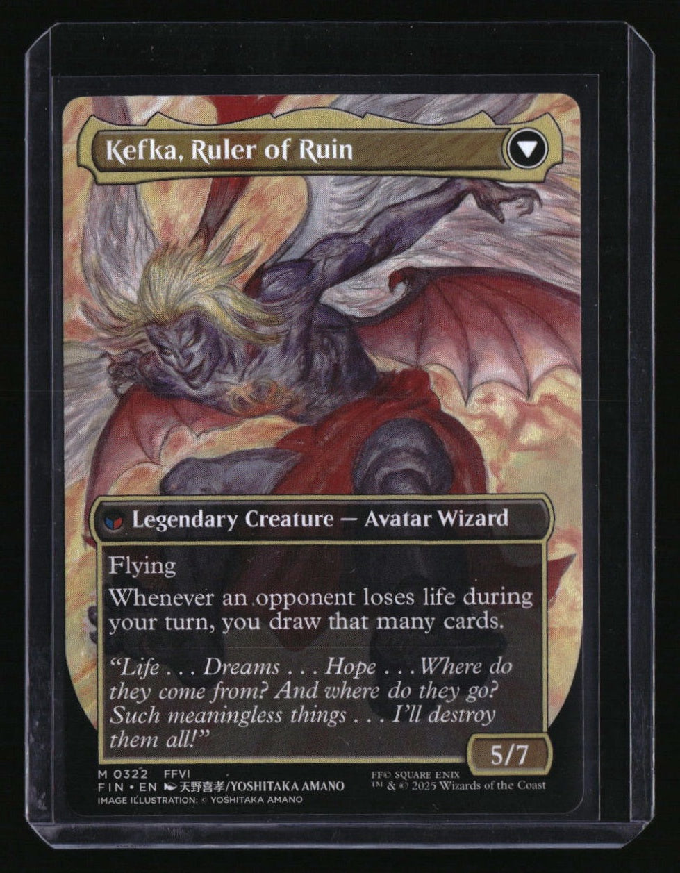 | *This is a Single Trading Card* | *Discounts are not available on Single Trading Cards* | This is a nice example of a FINAL FANTASY #322 Kefka, Court Mage (0322) (Borderless) Mythic. Please check out our other listings for more great cards. Thank you for your interest in one of our cards!!! Prior to making any bids/purchases, I would kindly ask you to read the information below: Item Condition Please see the provided pictures for the condition of the card or item, pictures of the front and back are provided for your review. We cannot accommodate requests for additional pictures. Any notable flaws or damage to this item will be noted in this listing. Please use the attached photos provided for your own assessment. Graded card cases may come with some minor wear/tear, surface scratch, chipped, or blemish. There are no partial refunds or returns because of the case condition. All single cards will come in protective cases. If you purchase a listing that's sold as a lot it may come in snap cases or sealed in a team bag, and not all cards will be individually sleeved and top loaded in all lots. Raw cards are sold as such, with no guarantees of potential and/or expected grades. All cards are sold as is, with no returns or refunds. Listed With Mascot.