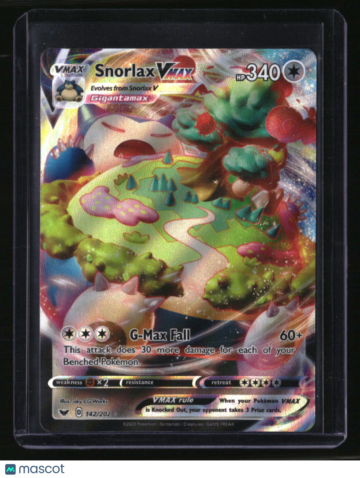 | *This is a Single Trading Card* | *Discounts are not available on Single Trading Cards* | This is a nice example of a SWSH01: Sword & Shield Base Set #142/202 Snorlax VMAX Ultra Rare,Holo. Please check out our other listings for more great cards. Thank you for your interest in one of our cards!!! Prior to making any bids/purchases, I would kindly ask you to read the information below: Item Condition Please see the provided pictures for the condition of the card or item, pictures of the front and back are provided for your review. We cannot accommodate requests for additional pictures. Any notable flaws or damage to this item will be noted in this listing. Please use the attached photos provided for your own assessment. Graded card cases may come with some minor wear/tear, surface scratch, chipped, or blemish. There are no partial refunds or returns because of the case condition. All single cards will come in protective cases. If you purchase a listing that's sold as a lot it may come in snap cases or sealed in a team bag, and not all cards will be individually sleeved and top loaded in all lots. Raw cards are sold as such, with no guarantees of potential and/or expected grades. All cards are sold as is, with no returns or refunds. Listed With Mascot.