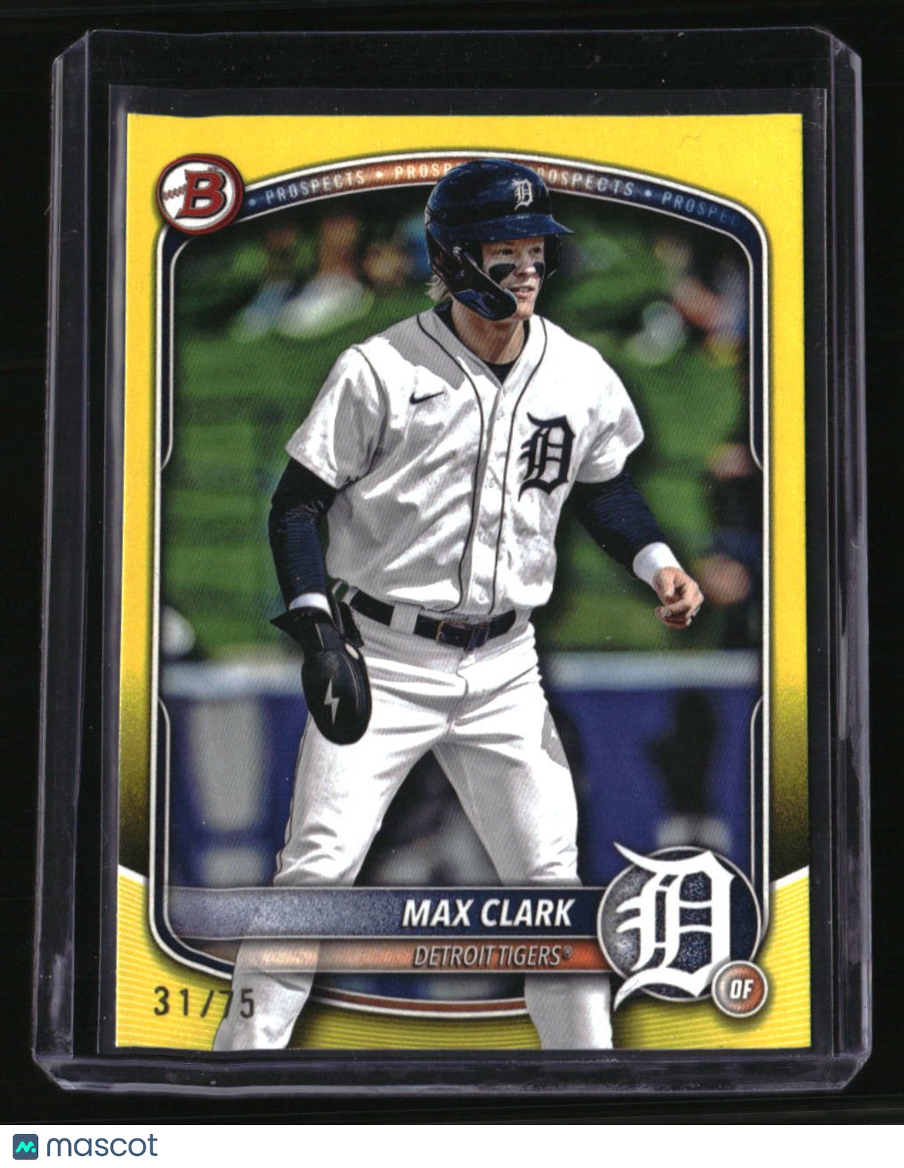 | *This is a Single Trading Card* | *Discounts are not available on Single Trading Cards* | This is a nice example of a 2025 Bowman #BP-24 Max Clark Prospects Yellow SN. Please check out our other listings for more great cards. Thank you for your interest in one of our cards!!! Prior to making any bids/purchases, I would kindly ask you to read the information below: Item Condition Please see the provided pictures for the condition of the card or item, pictures of the front and back are provided for your review. We cannot accommodate requests for additional pictures. Any notable flaws or damage to this item will be noted in this listing. Please use the attached photos provided for your own assessment. Graded card cases may come with some minor wear/tear, surface scratch, chipped, or blemish. There are no partial refunds or returns because of the case condition. All single cards will come in protective cases. If you purchase a listing that's sold as a lot it may come in snap cases or sealed in a team bag, and not all cards will be individually sleeved and top loaded in all lots. Raw cards are sold as such, with no guarantees of potential and/or expected grades. All cards are sold as is, with no returns or refunds. Listed With Mascot.