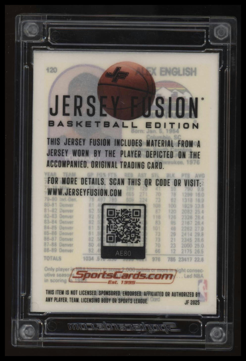 | *This is a Single Trading Card* | *Discounts are not available on Single Trading Cards* | This is a nice example of a 2025 Jersey Fusion # Alex English . Please check out our other listings for more great cards. Thank you for your interest in one of our cards!!! Prior to making any bids/purchases, I would kindly ask you to read the information below: Item Condition Please see the provided pictures for the condition of the card or item, pictures of the front and back are provided for your review. We cannot accommodate requests for additional pictures. Any notable flaws or damage to this item will be noted in this listing. Please use the attached photos provided for your own assessment. Graded card cases may come with some minor wear/tear, surface scratch, chipped, or blemish. There are no partial refunds or returns because of the case condition. All single cards will come in protective cases. If you purchase a listing that's sold as a lot it may come in snap cases or sealed in a team bag, and not all cards will be individually sleeved and top loaded in all lots. Raw cards are sold as such, with no guarantees of potential and/or expected grades. All cards are sold as is, with no returns or refunds. Listed With Mascot.