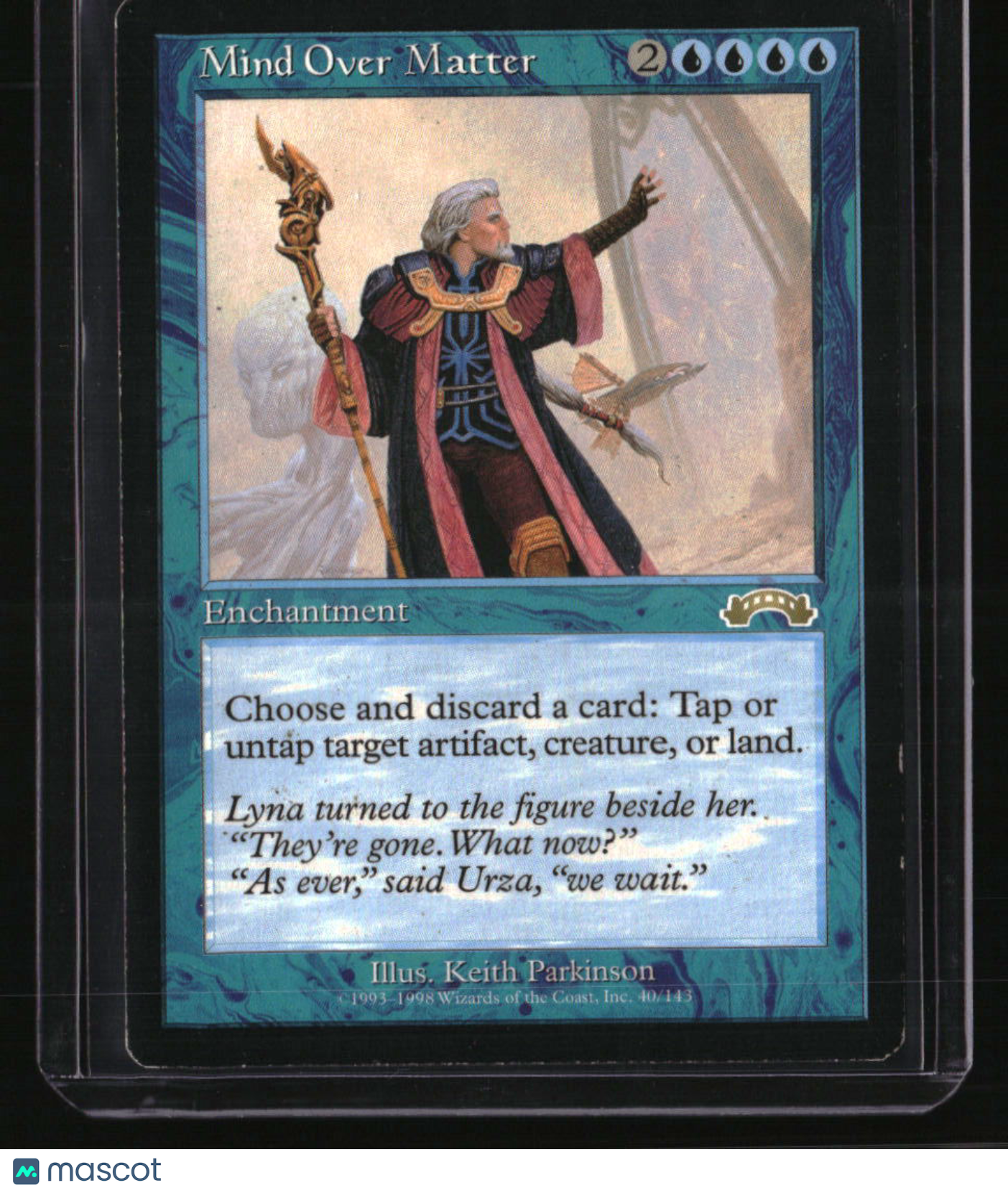 | *This is a Single Trading Card* | *Discounts are not available on Single Trading Cards* | This is a nice example of a Exodus #40 Mind Over Matter Rare. Please check out our other listings for more great cards. Thank you for your interest in one of our cards!!! Prior to making any bids/purchases, I would kindly ask you to read the information below: Item Condition Please see the provided pictures for the condition of the card or item, pictures of the front and back are provided for your review. We cannot accommodate requests for additional pictures. Any notable flaws or damage to this item will be noted in this listing. Please use the attached photos provided for your own assessment. Graded card cases may come with some minor wear/tear, surface scratch, chipped, or blemish. There are no partial refunds or returns because of the case condition. All single cards will come in protective cases. If you purchase a listing that's sold as a lot it may come in snap cases or sealed in a team bag, and not all cards will be individually sleeved and top loaded in all lots. Raw cards are sold as such, with no guarantees of potential and/or expected grades. All cards are sold as is, with no returns or refunds. Listed With Mascot.