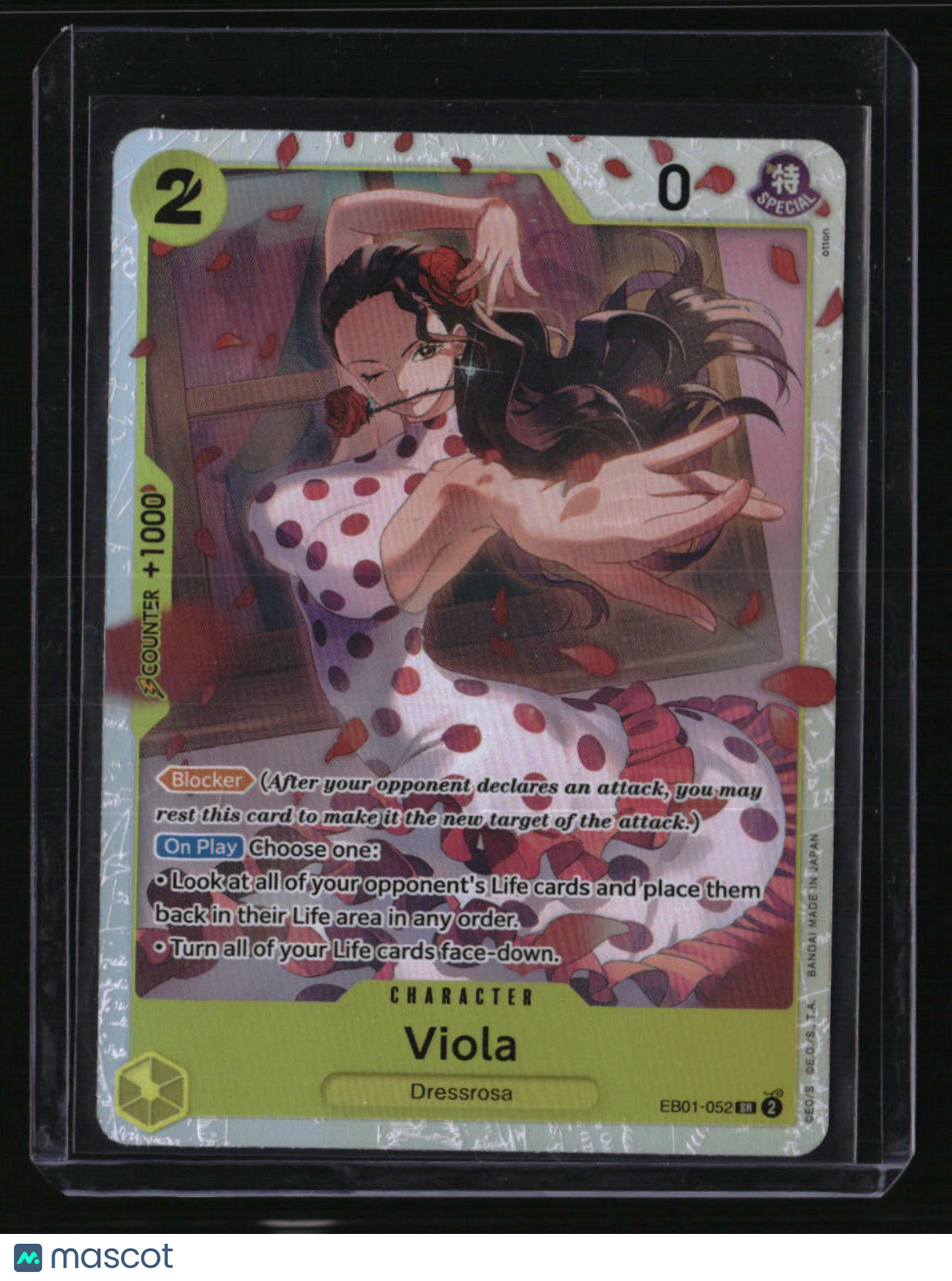 | *This is a Single Trading Card* | *Discounts are not available on Single Trading Cards* | This is a nice example of a Extra Booster: Memorial Collection #EB01-052 Viola Super Rare. Please check out our other listings for more great cards. Thank you for your interest in one of our cards!!! Prior to making any bids/purchases, I would kindly ask you to read the information below: Item Condition Please see the provided pictures for the condition of the card or item, pictures of the front and back are provided for your review. We cannot accommodate requests for additional pictures. Any notable flaws or damage to this item will be noted in this listing. Please use the attached photos provided for your own assessment. Graded card cases may come with some minor wear/tear, surface scratch, chipped, or blemish. There are no partial refunds or returns because of the case condition. All single cards will come in protective cases. If you purchase a listing that's sold as a lot it may come in snap cases or sealed in a team bag, and not all cards will be individually sleeved and top loaded in all lots. Raw cards are sold as such, with no guarantees of potential and/or expected grades. All cards are sold as is, with no returns or refunds. Listed With Mascot.