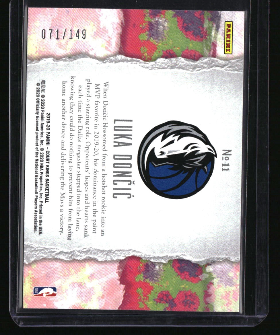 | *This is a Single Trading Card* | *Discounts are not available on Single Trading Cards* | This is a nice example of a 2019-20 Panini Court Kings #11 Luka Doncic Points in the Paint Ruby SN. Please check out our other listings for more great cards. Thank you for your interest in one of our cards!!! Prior to making any bids/purchases, I would kindly ask you to read the information below: Item Condition Please see the provided pictures for the condition of the card or item, pictures of the front and back are provided for your review. We cannot accommodate requests for additional pictures. Any notable flaws or damage to this item will be noted in this listing. Please use the attached photos provided for your own assessment. Graded card cases may come with some minor wear/tear, surface scratch, chipped, or blemish. There are no partial refunds or returns because of the case condition. All single cards will come in protective cases. If you purchase a listing that's sold as a lot it may come in snap cases or sealed in a team bag, and not all cards will be individually sleeved and top loaded in all lots. Raw cards are sold as such, with no guarantees of potential and/or expected grades. All cards are sold as is, with no returns or refunds. Listed With Mascot.