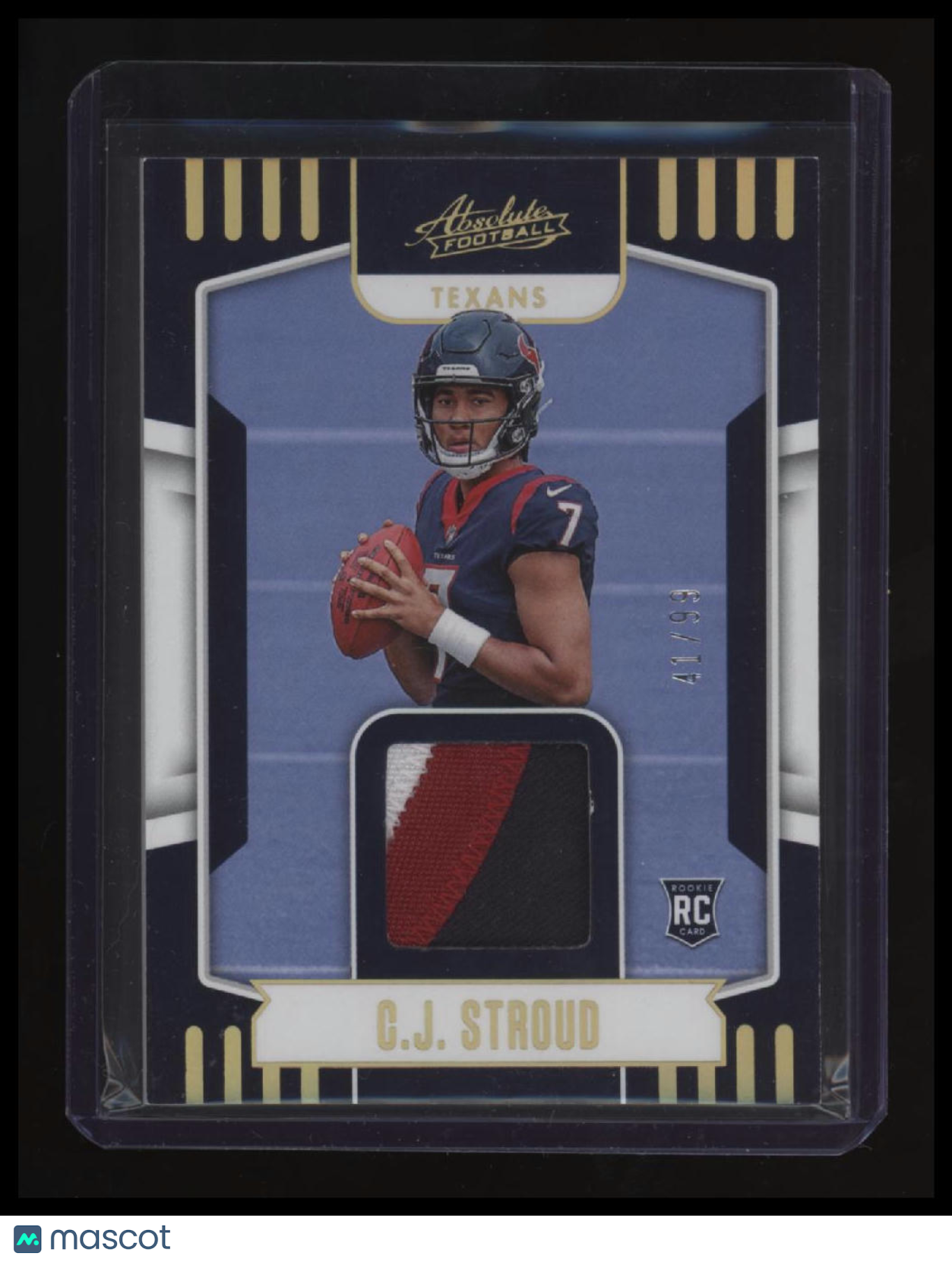 | *This is a Single Trading Card* | *Discounts are not available on Single Trading Cards* | This is a nice example of a 2023 Panini Absolute #ARM-40 C.J. Stroud Absolute Rookie Materials Gold SN,MEM. Please check out our other listings for more great cards. Thank you for your interest in one of our cards!!! Prior to making any bids/purchases, I would kindly ask you to read the information below: Item Condition Please see the provided pictures for the condition of the card or item, pictures of the front and back are provided for your review. We cannot accommodate requests for additional pictures. Any notable flaws or damage to this item will be noted in this listing. Please use the attached photos provided for your own assessment. Graded card cases may come with some minor wear/tear, surface scratch, chipped, or blemish. There are no partial refunds or returns because of the case condition. All single cards will come in protective cases. If you purchase a listing that's sold as a lot it may come in snap cases or sealed in a team bag, and not all cards will be individually sleeved and top loaded in all lots. Raw cards are sold as such, with no guarantees of potential and/or expected grades. All cards are sold as is, with no returns or refunds. Listed With Mascot.