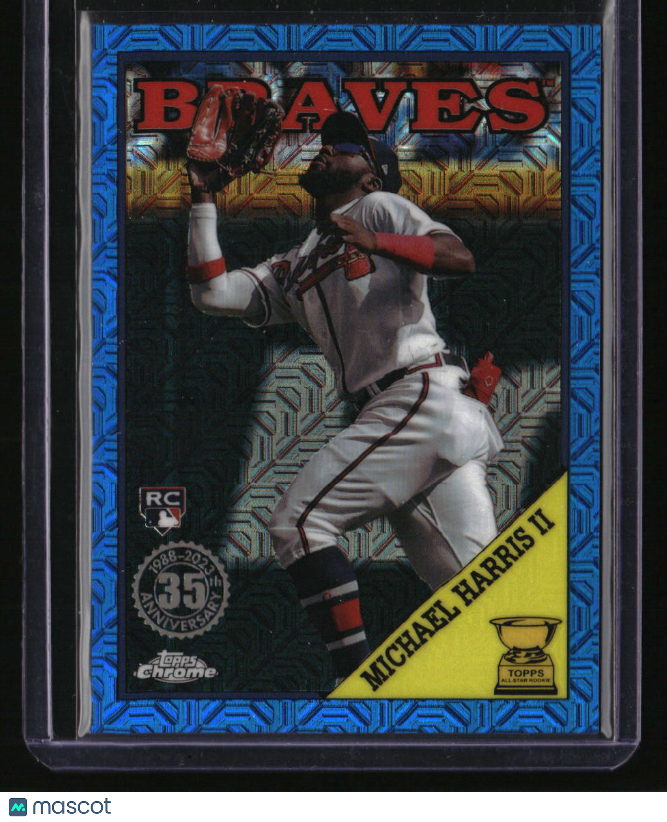 | *This is a Single Trading Card* | *Discounts are not available on Single Trading Cards* | This is a nice example of a 2023 Topps Update #T88CU-93 Michael Harris II 1988 Topps Baseball 35th Anniversary Chrome Blue SN. Please check out our other listings for more great cards. Thank you for your interest in one of our cards!!! Prior to making any bids/purchases, I would kindly ask you to read the information below: Item Condition Please see the provided pictures for the condition of the card or item, pictures of the front and back are provided for your review. We cannot accommodate requests for additional pictures. Any notable flaws or damage to this item will be noted in this listing. Please use the attached photos provided for your own assessment. Graded card cases may come with some minor wear/tear, surface scratch, chipped, or blemish. There are no partial refunds or returns because of the case condition. All single cards will come in protective cases. If you purchase a listing that's sold as a lot it may come in snap cases or sealed in a team bag, and not all cards will be individually sleeved and top loaded in all lots. Raw cards are sold as such, with no guarantees of potential and/or expected grades. All cards are sold as is, with no returns or refunds. Listed With Mascot.