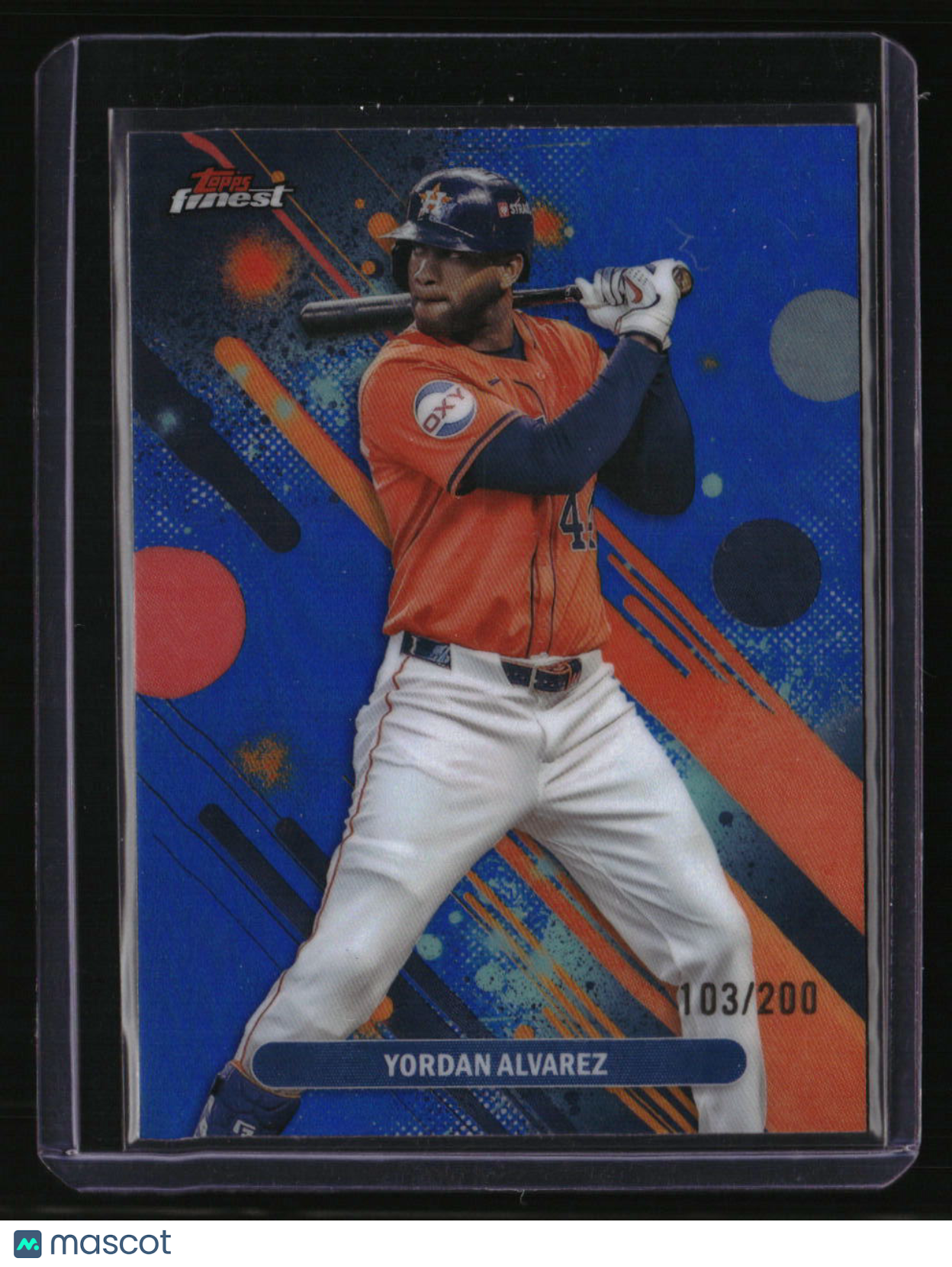| *This is a Single Trading Card* | *Discounts are not available on Single Trading Cards* | This is a nice example of a 2025 Finest #59 Yordan Alvarez Blue SN. Please check out our other listings for more great cards. Thank you for your interest in one of our cards!!! Prior to making any bids/purchases, I would kindly ask you to read the information below: Item Condition Please see the provided pictures for the condition of the card or item, pictures of the front and back are provided for your review. We cannot accommodate requests for additional pictures. Any notable flaws or damage to this item will be noted in this listing. Please use the attached photos provided for your own assessment. Graded card cases may come with some minor wear/tear, surface scratch, chipped, or blemish. There are no partial refunds or returns because of the case condition. All single cards will come in protective cases. If you purchase a listing that's sold as a lot it may come in snap cases or sealed in a team bag, and not all cards will be individually sleeved and top loaded in all lots. Raw cards are sold as such, with no guarantees of potential and/or expected grades. All cards are sold as is, with no returns or refunds. Listed With Mascot.