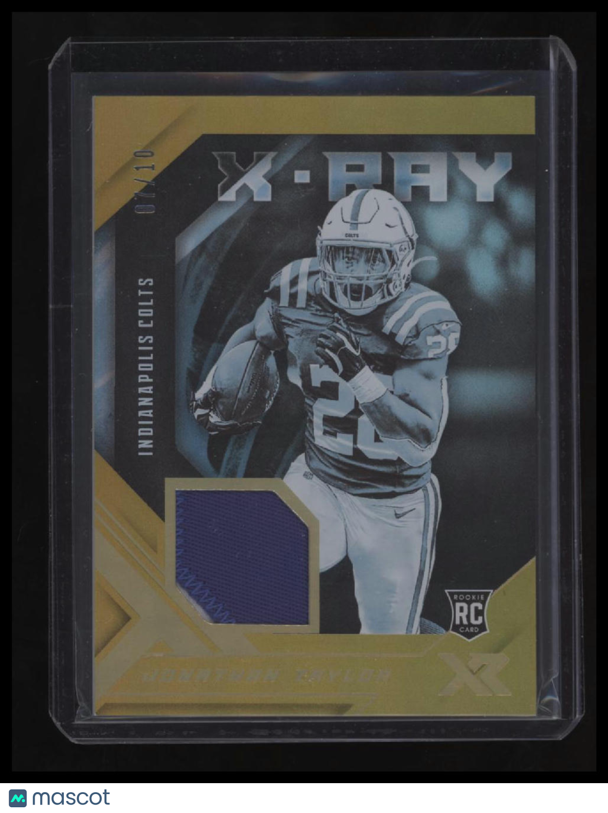 | *This is a Single Trading Card* | *Discounts are not available on Single Trading Cards* | This is a nice example of a 2020 Panini XR #XR-JT Jonathan Taylor X-Ray Swatches Gold SN,MEM. Please check out our other listings for more great cards. Thank you for your interest in one of our cards!!! Prior to making any bids/purchases, I would kindly ask you to read the information below: Item Condition Please see the provided pictures for the condition of the card or item, pictures of the front and back are provided for your review. We cannot accommodate requests for additional pictures. Any notable flaws or damage to this item will be noted in this listing. Please use the attached photos provided for your own assessment. Graded card cases may come with some minor wear/tear, surface scratch, chipped, or blemish. There are no partial refunds or returns because of the case condition. All single cards will come in protective cases. If you purchase a listing that's sold as a lot it may come in snap cases or sealed in a team bag, and not all cards will be individually sleeved and top loaded in all lots. Raw cards are sold as such, with no guarantees of potential and/or expected grades. All cards are sold as is, with no returns or refunds. Listed With Mascot.