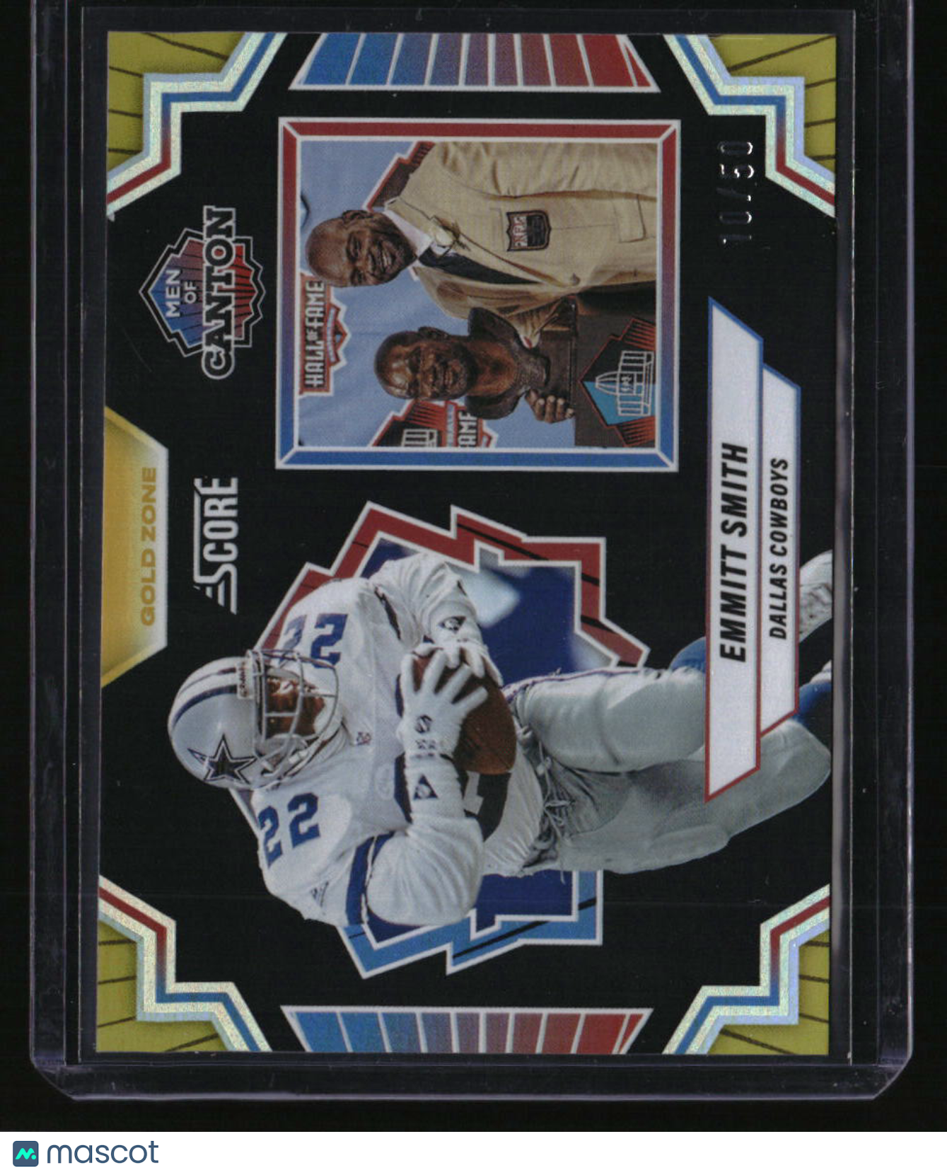 | *This is a Single Trading Card* | *Discounts are not available on Single Trading Cards* | This is a nice example of a 2025 Score #2 Emmitt Smith Men of Canton Gold Zone SN. Please check out our other listings for more great cards. Thank you for your interest in one of our cards!!! Prior to making any bids/purchases, I would kindly ask you to read the information below: Item Condition Please see the provided pictures for the condition of the card or item, pictures of the front and back are provided for your review. We cannot accommodate requests for additional pictures. Any notable flaws or damage to this item will be noted in this listing. Please use the attached photos provided for your own assessment. Graded card cases may come with some minor wear/tear, surface scratch, chipped, or blemish. There are no partial refunds or returns because of the case condition. All single cards will come in protective cases. If you purchase a listing that's sold as a lot it may come in snap cases or sealed in a team bag, and not all cards will be individually sleeved and top loaded in all lots. Raw cards are sold as such, with no guarantees of potential and/or expected grades. All cards are sold as is, with no returns or refunds. Listed With Mascot.