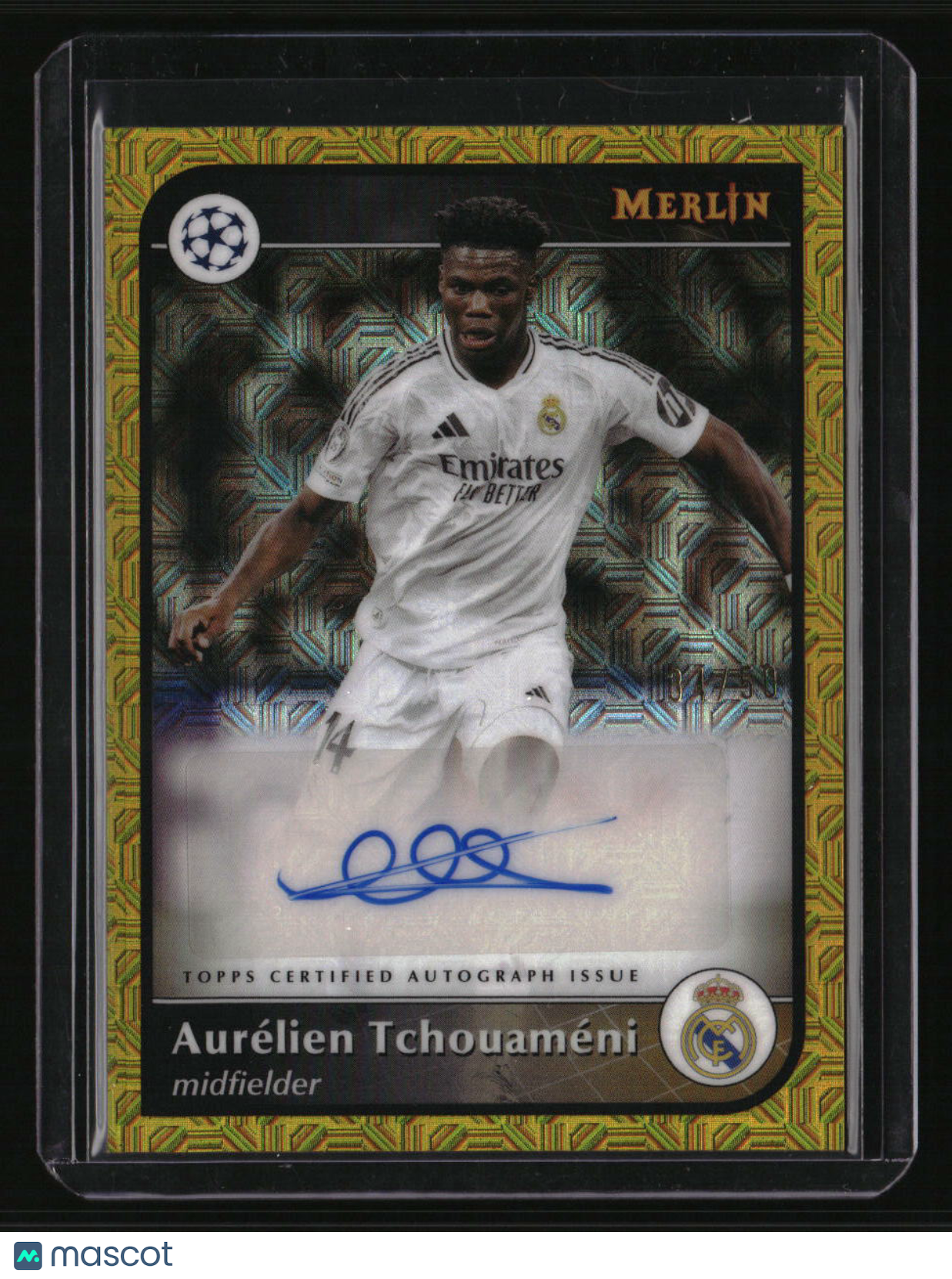 | *This is a Single Trading Card* | *Discounts are not available on Single Trading Cards* | This is a nice example of a 2024-25 Merlin UEFA Club Competitions #AU-AT Aurélien Tchouaméni Base Autographs Gold SN,AU. Please check out our other listings for more great cards. Thank you for your interest in one of our cards!!! Prior to making any bids/purchases, I would kindly ask you to read the information below: Item Condition Please see the provided pictures for the condition of the card or item, pictures of the front and back are provided for your review. We cannot accommodate requests for additional pictures. Any notable flaws or damage to this item will be noted in this listing. Please use the attached photos provided for your own assessment. Graded card cases may come with some minor wear/tear, surface scratch, chipped, or blemish. There are no partial refunds or returns because of the case condition. All single cards will come in protective cases. If you purchase a listing that's sold as a lot it may come in snap cases or sealed in a team bag, and not all cards will be individually sleeved and top loaded in all lots. Raw cards are sold as such, with no guarantees of potential and/or expected grades. All cards are sold as is, with no returns or refunds. Listed With Mascot.