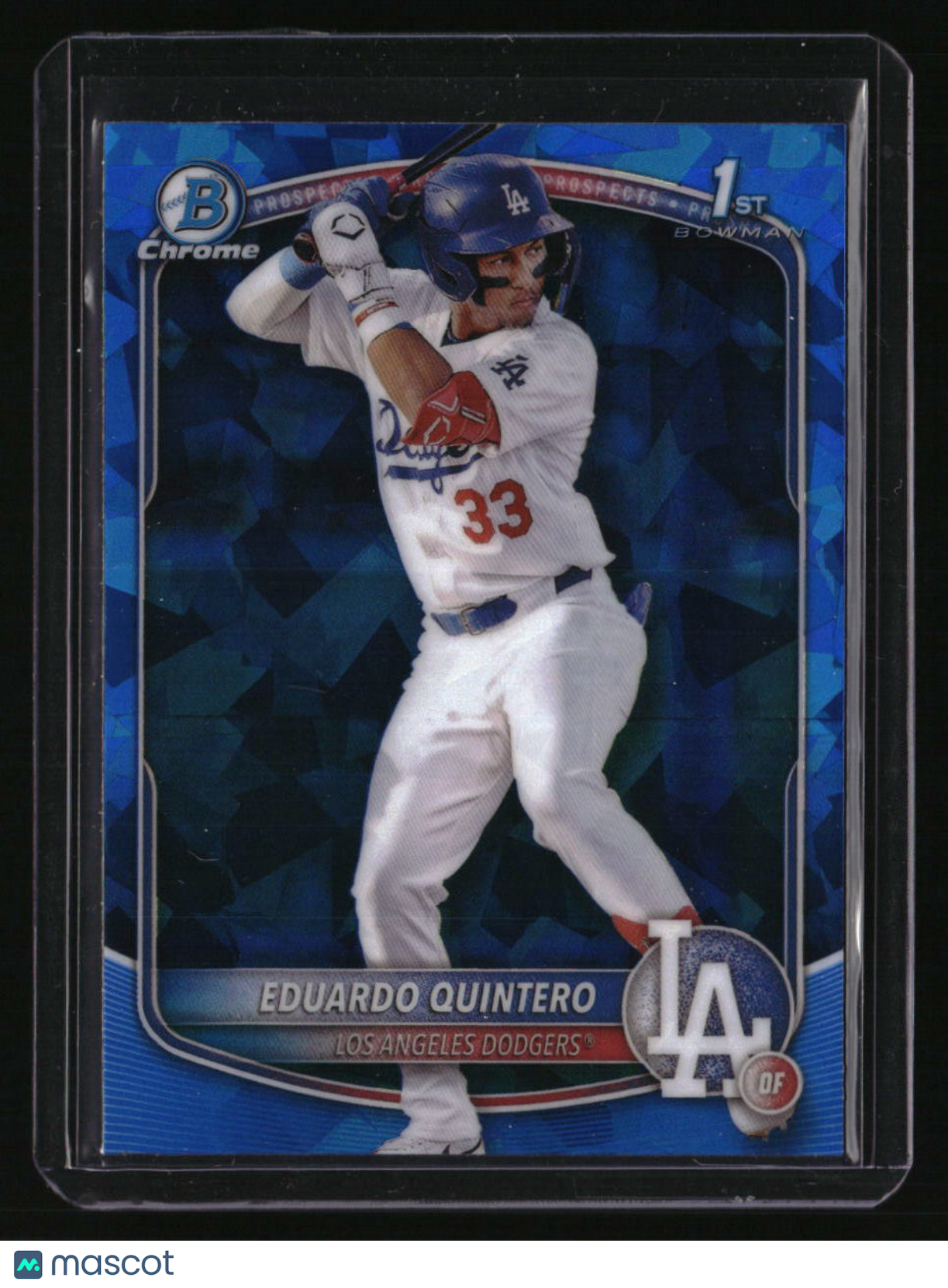 | *This is a Single Trading Card* | *Discounts are not available on Single Trading Cards* | This is a nice example of a 2025 Bowman Sapphire Edition #BCP-115 Eduardo Quintero . Please check out our other listings for more great cards. Thank you for your interest in one of our cards!!! Prior to making any bids/purchases, I would kindly ask you to read the information below: Item Condition Please see the provided pictures for the condition of the card or item, pictures of the front and back are provided for your review. We cannot accommodate requests for additional pictures. Any notable flaws or damage to this item will be noted in this listing. Please use the attached photos provided for your own assessment. Graded card cases may come with some minor wear/tear, surface scratch, chipped, or blemish. There are no partial refunds or returns because of the case condition. All single cards will come in protective cases. If you purchase a listing that's sold as a lot it may come in snap cases or sealed in a team bag, and not all cards will be individually sleeved and top loaded in all lots. Raw cards are sold as such, with no guarantees of potential and/or expected grades. All cards are sold as is, with no returns or refunds. Listed With Mascot.