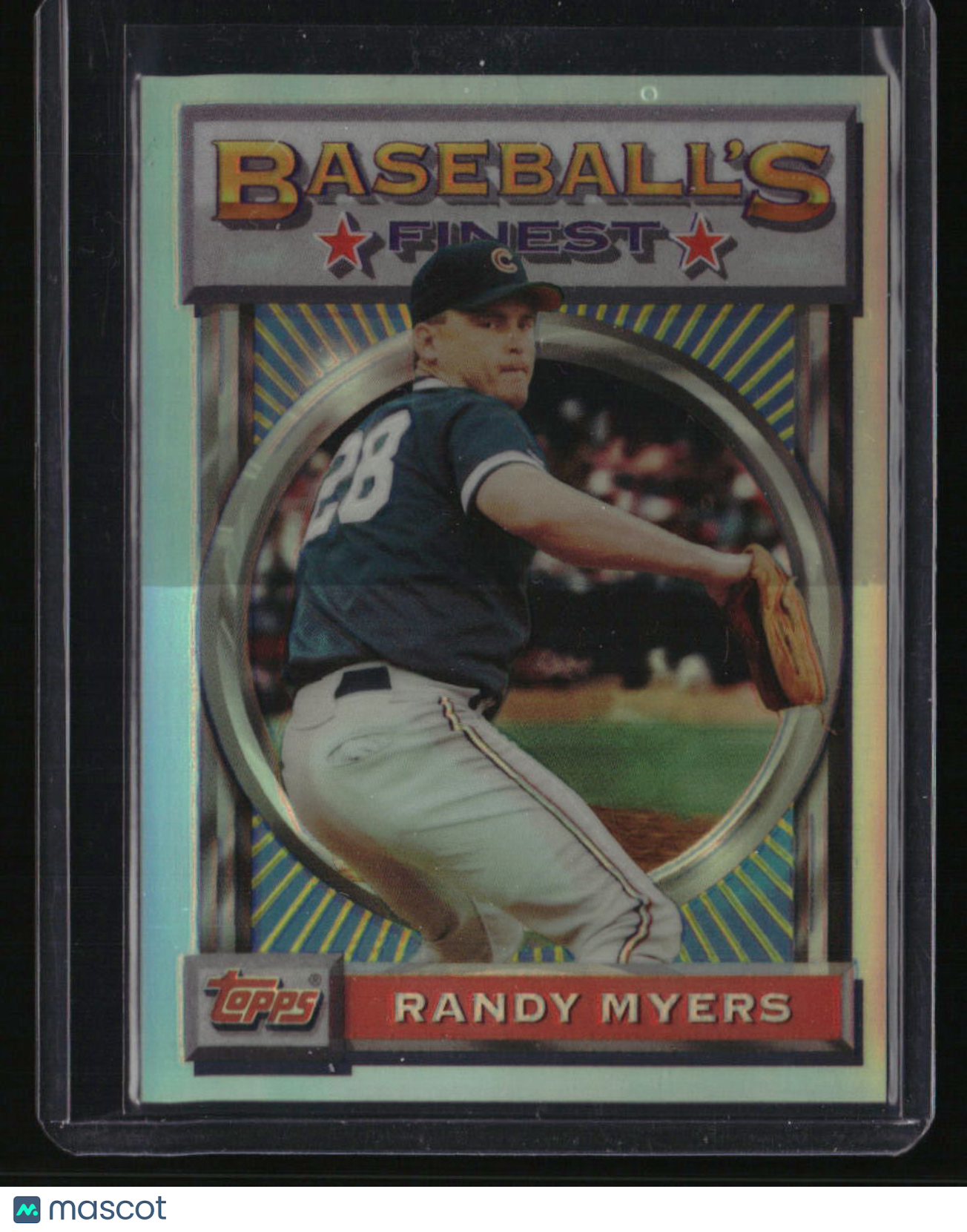 | *This is a Single Trading Card* | *Discounts are not available on Single Trading Cards* | This is a nice example of a 1993 Finest #182 Randy Myers Refractors . Please check out our other listings for more great cards. Thank you for your interest in one of our cards!!! Prior to making any bids/purchases, I would kindly ask you to read the information below: Item Condition Please see the provided pictures for the condition of the card or item, pictures of the front and back are provided for your review. We cannot accommodate requests for additional pictures. Any notable flaws or damage to this item will be noted in this listing. Please use the attached photos provided for your own assessment. Graded card cases may come with some minor wear/tear, surface scratch, chipped, or blemish. There are no partial refunds or returns because of the case condition. All single cards will come in protective cases. If you purchase a listing that's sold as a lot it may come in snap cases or sealed in a team bag, and not all cards will be individually sleeved and top loaded in all lots. Raw cards are sold as such, with no guarantees of potential and/or expected grades. All cards are sold as is, with no returns or refunds. Listed With Mascot.