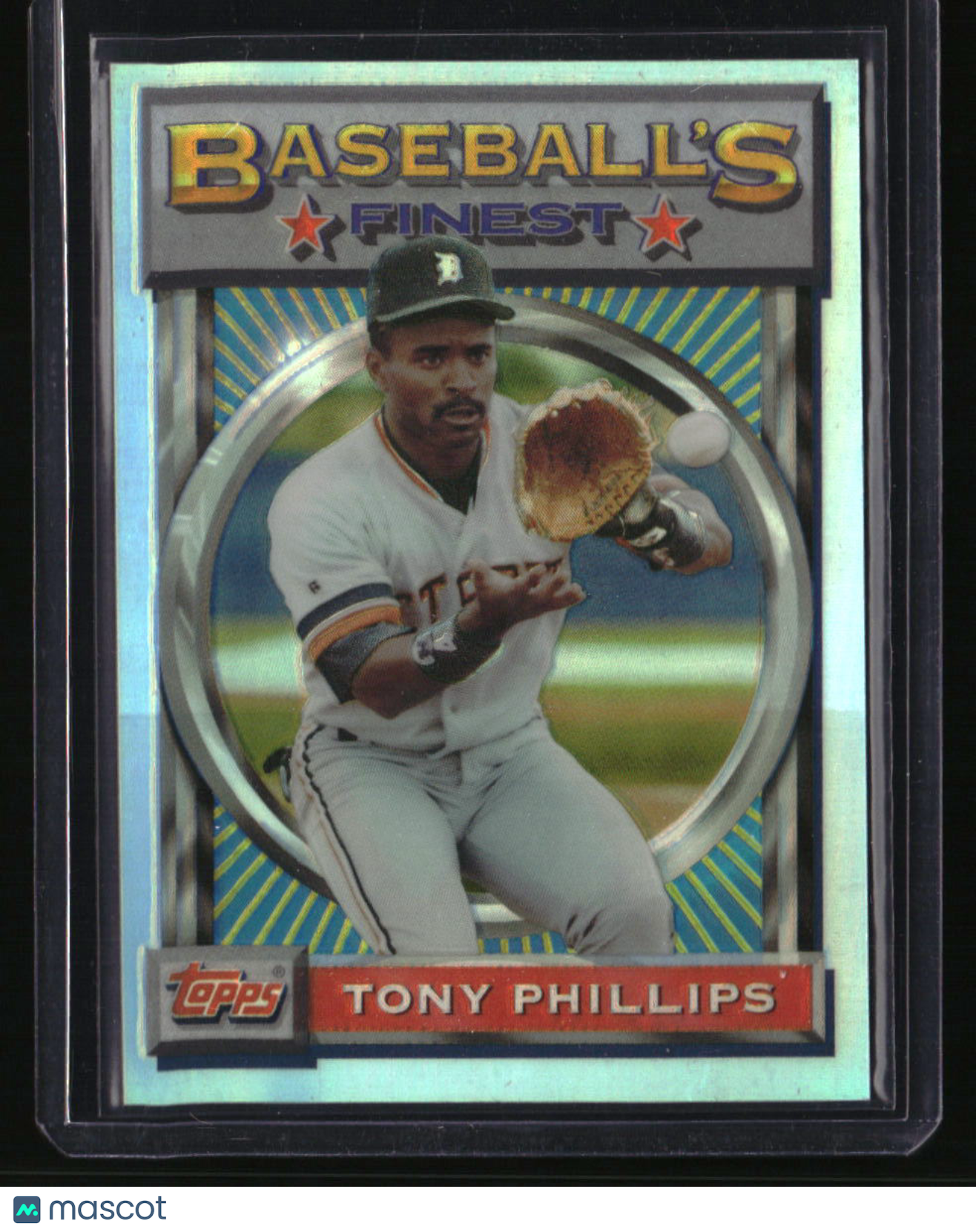 | *This is a Single Trading Card* | *Discounts are not available on Single Trading Cards* | This is a nice example of a 1993 Finest #75 Tony Phillips Refractors . Please check out our other listings for more great cards. Thank you for your interest in one of our cards!!! Prior to making any bids/purchases, I would kindly ask you to read the information below: Item Condition Please see the provided pictures for the condition of the card or item, pictures of the front and back are provided for your review. We cannot accommodate requests for additional pictures. Any notable flaws or damage to this item will be noted in this listing. Please use the attached photos provided for your own assessment. Graded card cases may come with some minor wear/tear, surface scratch, chipped, or blemish. There are no partial refunds or returns because of the case condition. All single cards will come in protective cases. If you purchase a listing that's sold as a lot it may come in snap cases or sealed in a team bag, and not all cards will be individually sleeved and top loaded in all lots. Raw cards are sold as such, with no guarantees of potential and/or expected grades. All cards are sold as is, with no returns or refunds. Listed With Mascot.