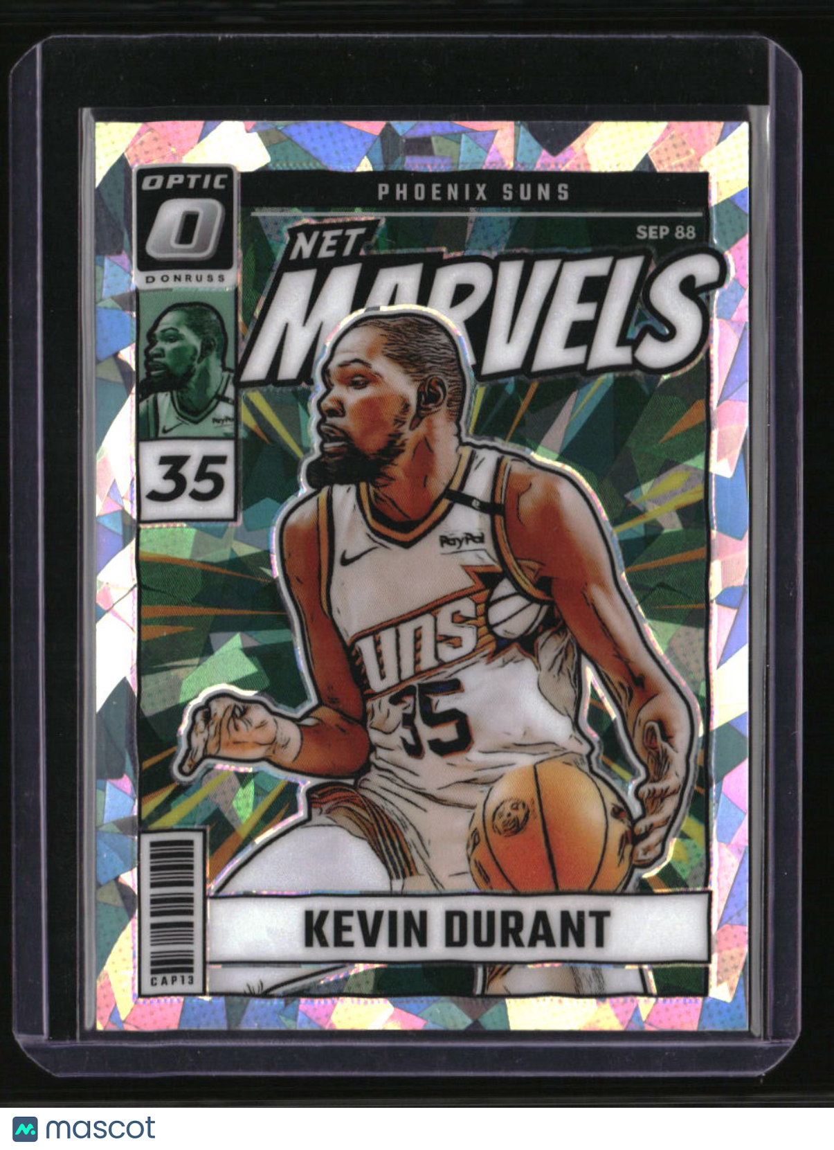 | *This is a Single Trading Card* | *Discounts are not available on Single Trading Cards* | This is a nice example of a 2024-25 Donruss Optic #18 Kevin Durant Net Marvels Cracked Ice SN. Please check out our other listings for more great cards. Thank you for your interest in one of our cards!!! Prior to making any bids/purchases, I would kindly ask you to read the information below: Item Condition Please see the provided pictures for the condition of the card or item, pictures of the front and back are provided for your review. We cannot accommodate requests for additional pictures. Any notable flaws or damage to this item will be noted in this listing. Please use the attached photos provided for your own assessment. Graded card cases may come with some minor wear/tear, surface scratch, chipped, or blemish. There are no partial refunds or returns because of the case condition. All single cards will come in protective cases. If you purchase a listing that's sold as a lot it may come in snap cases or sealed in a team bag, and not all cards will be individually sleeved and top loaded in all lots. Raw cards are sold as such, with no guarantees of potential and/or expected grades. All cards are sold as is, with no returns or refunds. Listed With Mascot.