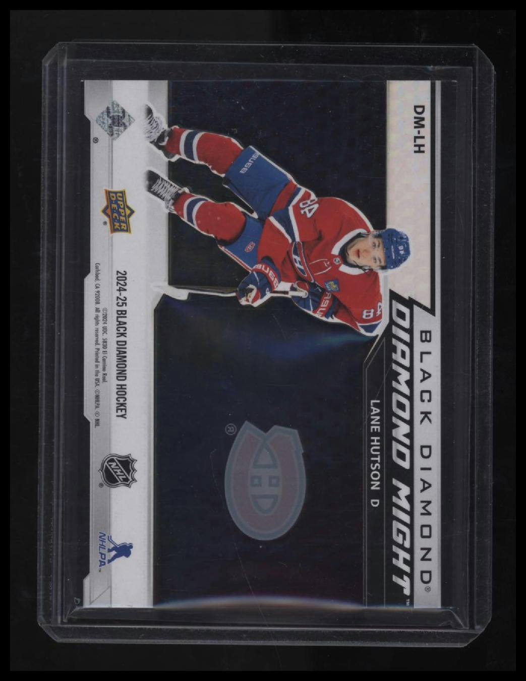 | *This is a Single Trading Card* | *Discounts are not available on Single Trading Cards* | This is a nice example of a 2024-25 Upper Deck Black Diamond #DM-LH Lane Hutson Diamond Might SN. Please check out our other listings for more great cards. Thank you for your interest in one of our cards!!! Prior to making any bids/purchases, I would kindly ask you to read the information below: Item Condition Please see the provided pictures for the condition of the card or item, pictures of the front and back are provided for your review. We cannot accommodate requests for additional pictures. Any notable flaws or damage to this item will be noted in this listing. Please use the attached photos provided for your own assessment. Graded card cases may come with some minor wear/tear, surface scratch, chipped, or blemish. There are no partial refunds or returns because of the case condition. All single cards will come in protective cases. If you purchase a listing that's sold as a lot it may come in snap cases or sealed in a team bag, and not all cards will be individually sleeved and top loaded in all lots. Raw cards are sold as such, with no guarantees of potential and/or expected grades. All cards are sold as is, with no returns or refunds. Listed With Mascot.