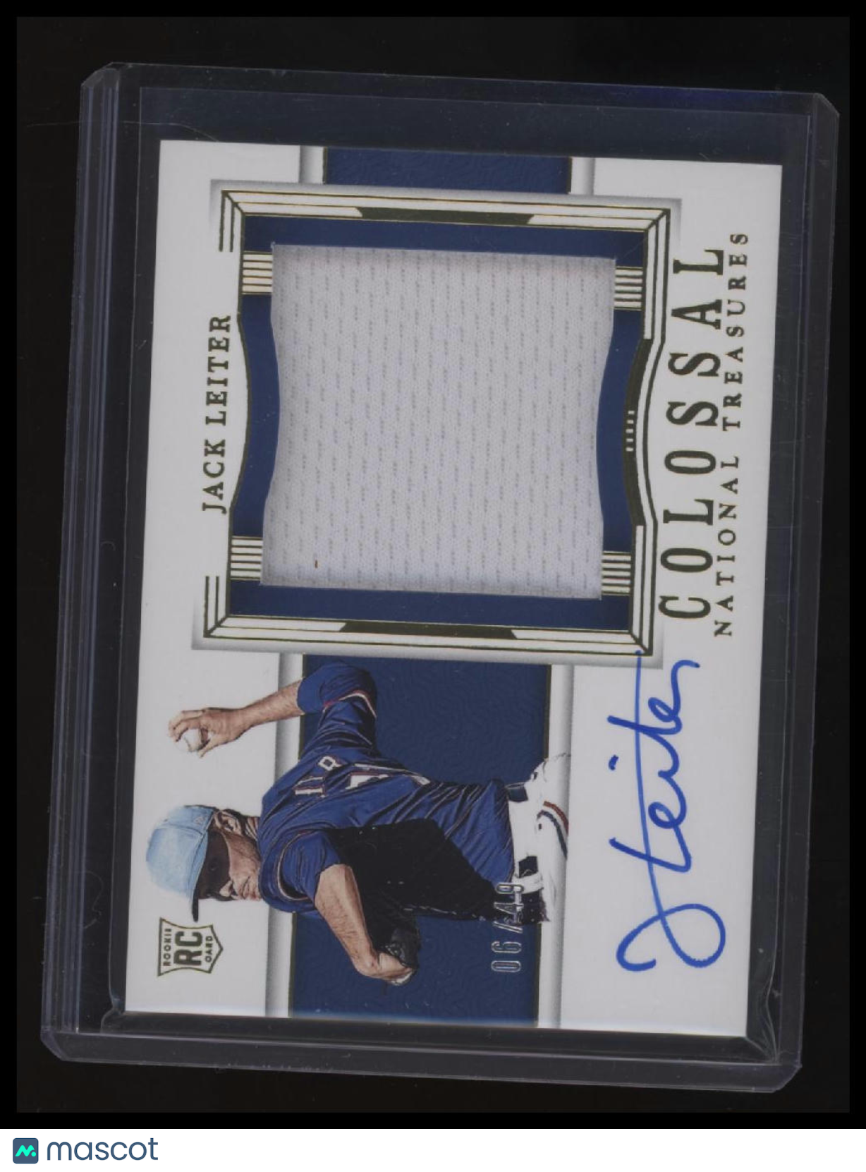 | *This is a Single Trading Card* | *Discounts are not available on Single Trading Cards* | This is a nice example of a 2024 Panini National Treasures #CMA-JLT Jack Leiter Colossal Material Autographs SN,MEM,AU. Please check out our other listings for more great cards. Thank you for your interest in one of our cards!!! Prior to making any bids/purchases, I would kindly ask you to read the information below: Item Condition Please see the provided pictures for the condition of the card or item, pictures of the front and back are provided for your review. We cannot accommodate requests for additional pictures. Any notable flaws or damage to this item will be noted in this listing. Please use the attached photos provided for your own assessment. Graded card cases may come with some minor wear/tear, surface scratch, chipped, or blemish. There are no partial refunds or returns because of the case condition. All single cards will come in protective cases. If you purchase a listing that's sold as a lot it may come in snap cases or sealed in a team bag, and not all cards will be individually sleeved and top loaded in all lots. Raw cards are sold as such, with no guarantees of potential and/or expected grades. All cards are sold as is, with no returns or refunds. Listed With Mascot.