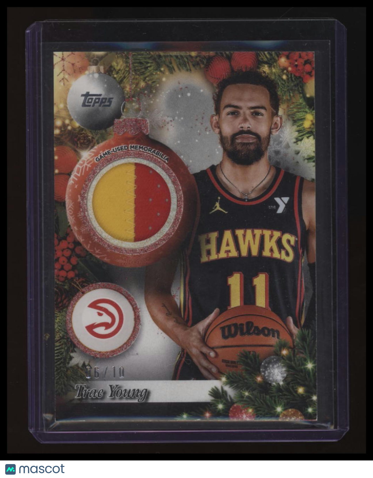 | *This is a Single Trading Card* | *Discounts are not available on Single Trading Cards* | This is a nice example of a 2025-26 Topps Holiday #PR-TY Trae Young Player Relics Red Glitter MEM. Please check out our other listings for more great cards. Thank you for your interest in one of our cards!!! Prior to making any bids/purchases, I would kindly ask you to read the information below: Item Condition Please see the provided pictures for the condition of the card or item, pictures of the front and back are provided for your review. We cannot accommodate requests for additional pictures. Any notable flaws or damage to this item will be noted in this listing. Please use the attached photos provided for your own assessment. Graded card cases may come with some minor wear/tear, surface scratch, chipped, or blemish. There are no partial refunds or returns because of the case condition. All single cards will come in protective cases. If you purchase a listing that's sold as a lot it may come in snap cases or sealed in a team bag, and not all cards will be individually sleeved and top loaded in all lots. Raw cards are sold as such, with no guarantees of potential and/or expected grades. All cards are sold as is, with no returns or refunds. Listed With Mascot.