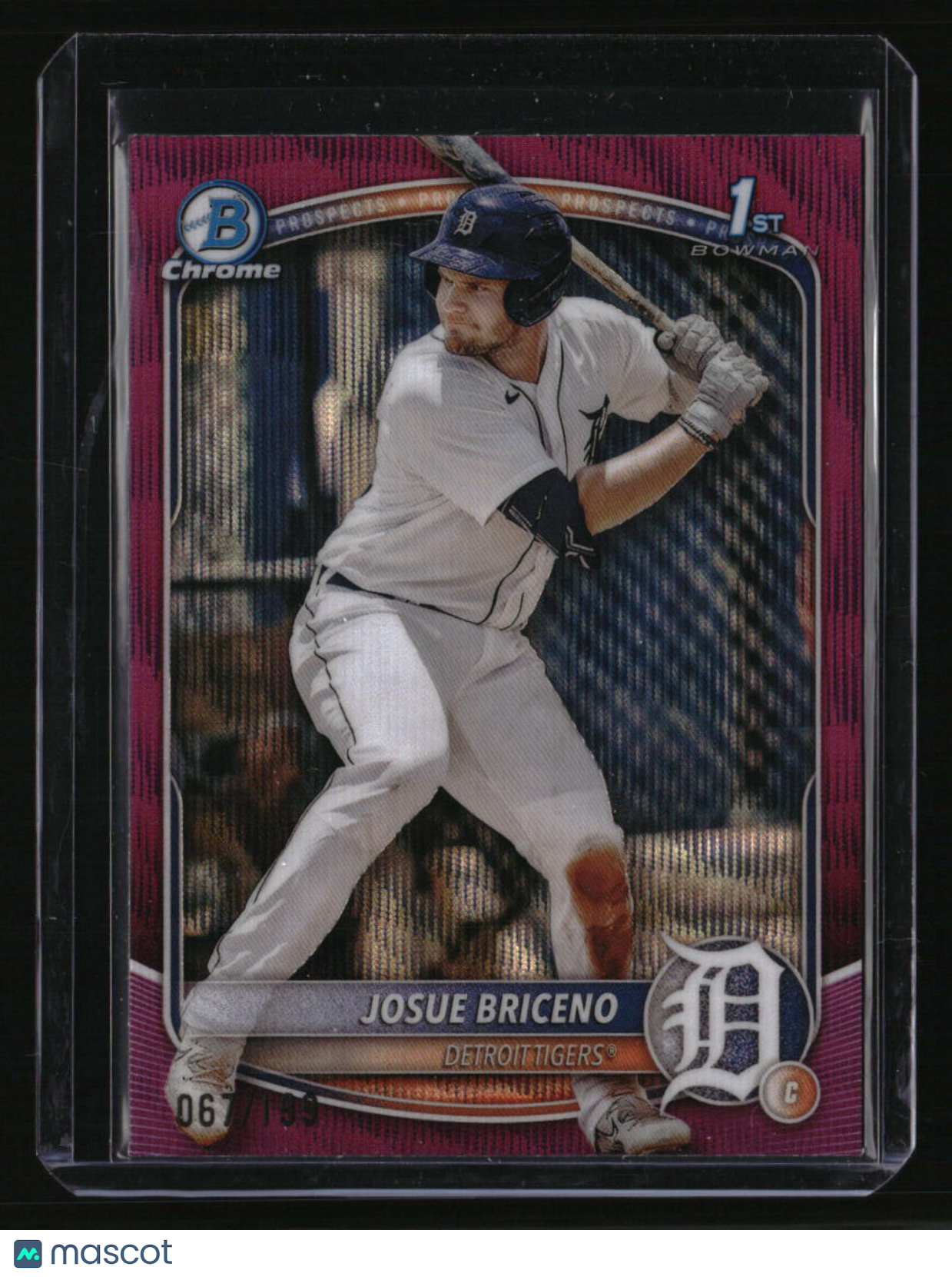 | *This is a Single Trading Card* | *Discounts are not available on Single Trading Cards* | This is a nice example of a 2025 Bowman #BCP-13 Josue Briceno Chrome Prospects Fuchsia Wave Refractor SN. Please check out our other listings for more great cards. Thank you for your interest in one of our cards!!! Prior to making any bids/purchases, I would kindly ask you to read the information below: Item Condition Please see the provided pictures for the condition of the card or item, pictures of the front and back are provided for your review. We cannot accommodate requests for additional pictures. Any notable flaws or damage to this item will be noted in this listing. Please use the attached photos provided for your own assessment. Graded card cases may come with some minor wear/tear, surface scratch, chipped, or blemish. There are no partial refunds or returns because of the case condition. All single cards will come in protective cases. If you purchase a listing that's sold as a lot it may come in snap cases or sealed in a team bag, and not all cards will be individually sleeved and top loaded in all lots. Raw cards are sold as such, with no guarantees of potential and/or expected grades. All cards are sold as is, with no returns or refunds. Listed With Mascot.