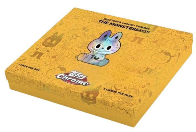 Description: Topps has partnered with How2Work and Pop Mart for the first time ever to bring you the 2025 Topps Chrome Labubu 10th Anniversary box! Each box includes four Chrome base cards and one Chrome parallel, plus a collectible keyring case to display your card just like your Labubu! Cards feature artwork from Labubu creator and artist Kasing Lung. Collectors can chase vibrant Chrome parallels including Refractors, 10th Anniversary logo borders and 1-of-1 SuperFractors, along with ultra-rare Artist Autographs.