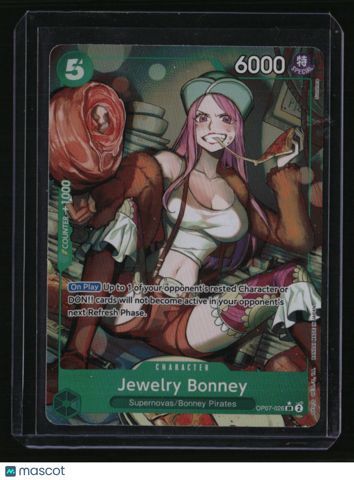| *This is a Single Trading Card* | *Discounts are not available on Single Trading Cards* | This is a nice example of a 500 Years in the Future #OP07-026 Jewelry Bonney (026) (Parallel) Super Rare. Please check out our other listings for more great cards. Thank you for your interest in one of our cards!!! Prior to making any bids/purchases, I would kindly ask you to read the information below: Item Condition Please see the provided pictures for the condition of the card or item, pictures of the front and back are provided for your review. We cannot accommodate requests for additional pictures. Any notable flaws or damage to this item will be noted in this listing. Please use the attached photos provided for your own assessment. Graded card cases may come with some minor wear/tear, surface scratch, chipped, or blemish. There are no partial refunds or returns because of the case condition. All single cards will come in protective cases. If you purchase a listing that's sold as a lot it may come in snap cases or sealed in a team bag, and not all cards will be individually sleeved and top loaded in all lots. Raw cards are sold as such, with no guarantees of potential and/or expected grades. All cards are sold as is, with no returns or refunds. Listed With Mascot.