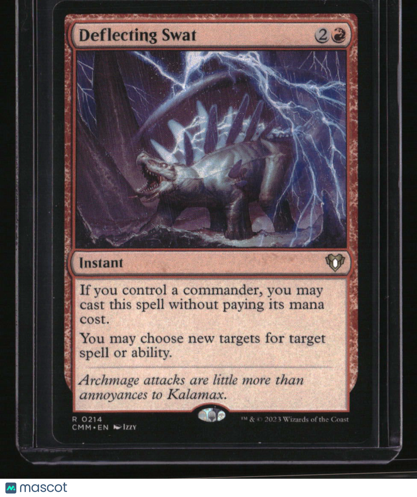| *This is a Single Trading Card* | *Discounts are not available on Single Trading Cards* | This is a nice example of a Commander Masters #214 Deflecting Swat Rare. Please check out our other listings for more great cards. Thank you for your interest in one of our cards!!! Prior to making any bids/purchases, I would kindly ask you to read the information below: Item Condition Please see the provided pictures for the condition of the card or item, pictures of the front and back are provided for your review. We cannot accommodate requests for additional pictures. Any notable flaws or damage to this item will be noted in this listing. Please use the attached photos provided for your own assessment. Graded card cases may come with some minor wear/tear, surface scratch, chipped, or blemish. There are no partial refunds or returns because of the case condition. All single cards will come in protective cases. If you purchase a listing that's sold as a lot it may come in snap cases or sealed in a team bag, and not all cards will be individually sleeved and top loaded in all lots. Raw cards are sold as such, with no guarantees of potential and/or expected grades. All cards are sold as is, with no returns or refunds. Listed With Mascot.