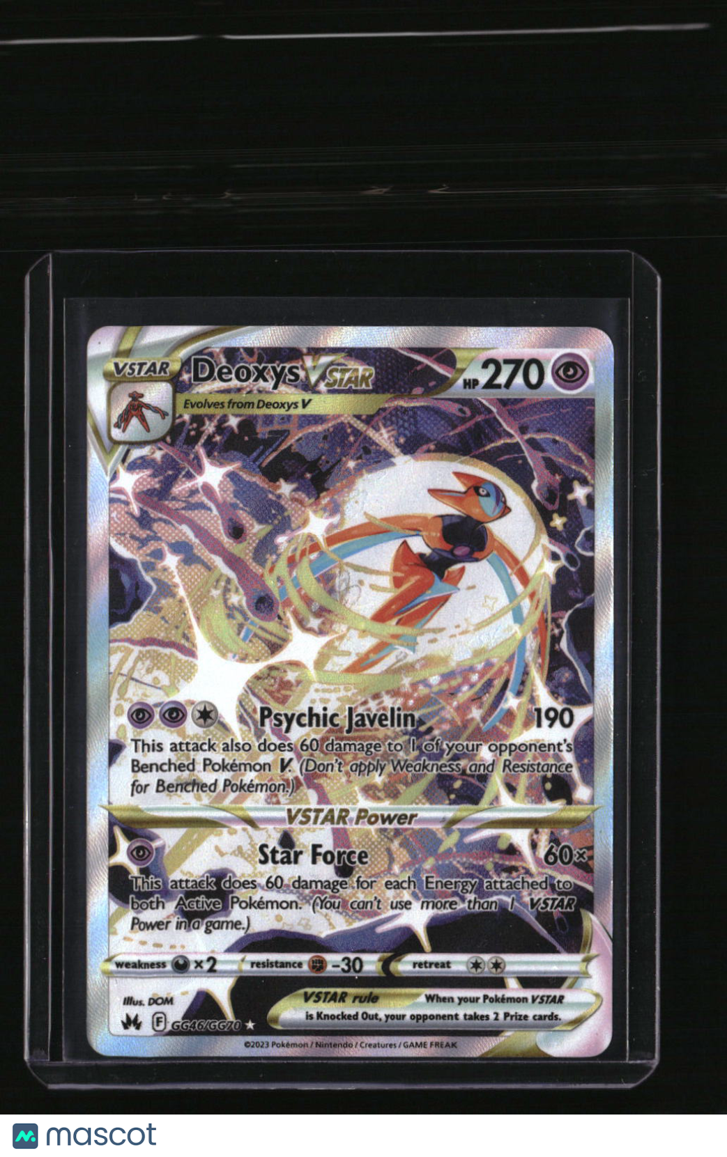 | *This is a Single Trading Card* | *Discounts are not available on Single Trading Cards* | This is a nice example of a Crown Zenith: Galarian Gallery #GG46/GG70 Deoxys VSTAR Ultra Rare,Holo. Please check out our other listings for more great cards. Thank you for your interest in one of our cards!!! Prior to making any bids/purchases, I would kindly ask you to read the information below: Item Condition Please see the provided pictures for the condition of the card or item, pictures of the front and back are provided for your review. We cannot accommodate requests for additional pictures. Any notable flaws or damage to this item will be noted in this listing. Please use the attached photos provided for your own assessment. Graded card cases may come with some minor wear/tear, surface scratch, chipped, or blemish. There are no partial refunds or returns because of the case condition. All single cards will come in protective cases. If you purchase a listing that's sold as a lot it may come in snap cases or sealed in a team bag, and not all cards will be individually sleeved and top loaded in all lots. Raw cards are sold as such, with no guarantees of potential and/or expected grades. All cards are sold as is, with no returns or refunds.