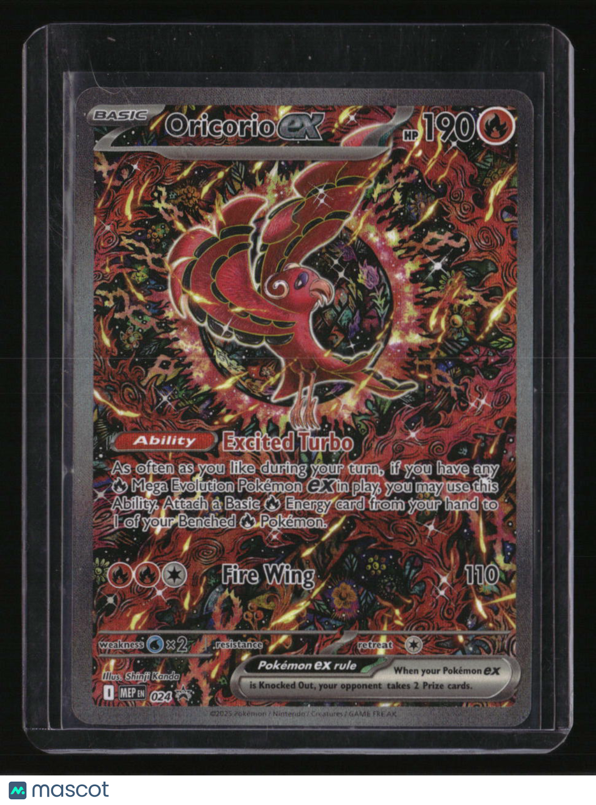 | *This is a Single Trading Card* | *Discounts are not available on Single Trading Cards* | This is a nice example of a ME: Mega Evolution Promo #024 Oricorio ex Promo,Holo. Please check out our other listings for more great cards. Thank you for your interest in one of our cards!!! Prior to making any bids/purchases, I would kindly ask you to read the information below: Item Condition Please see the provided pictures for the condition of the card or item, pictures of the front and back are provided for your review. We cannot accommodate requests for additional pictures. Any notable flaws or damage to this item will be noted in this listing. Please use the attached photos provided for your own assessment. Graded card cases may come with some minor wear/tear, surface scratch, chipped, or blemish. There are no partial refunds or returns because of the case condition. All single cards will come in protective cases. If you purchase a listing that's sold as a lot it may come in snap cases or sealed in a team bag, and not all cards will be individually sleeved and top loaded in all lots. Raw cards are sold as such, with no guarantees of potential and/or expected grades. All cards are sold as is, with no returns or refunds. Listed With Mascot.