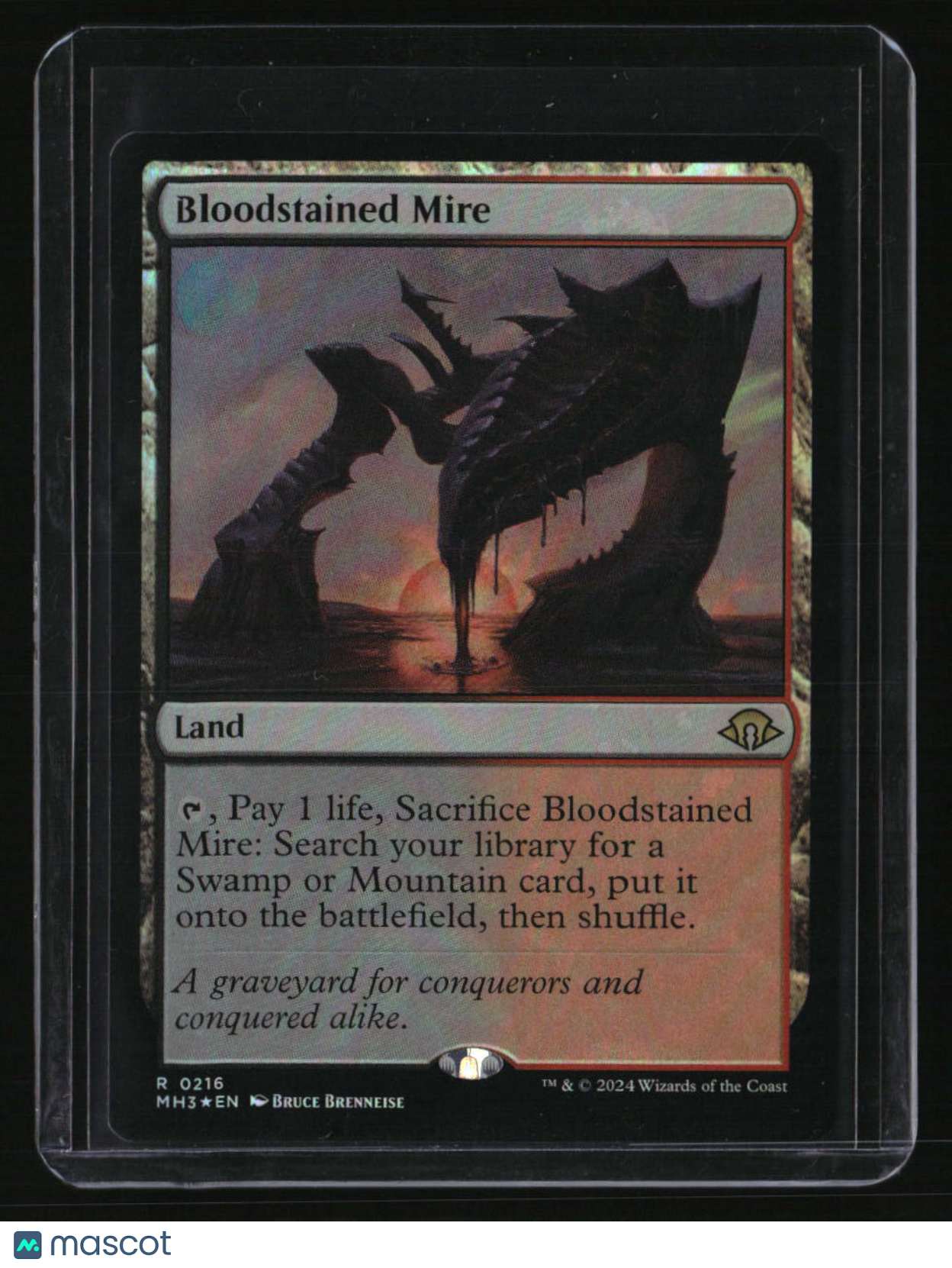 | *This is a Single Trading Card* | *Discounts are not available on Single Trading Cards* | This is a nice example of a Modern Horizons 3 #216 Bloodstained Mire Rare. Please check out our other listings for more great cards. Thank you for your interest in one of our cards!!! Prior to making any bids/purchases, I would kindly ask you to read the information below: Item Condition Please see the provided pictures for the condition of the card or item, pictures of the front and back are provided for your review. We cannot accommodate requests for additional pictures. Any notable flaws or damage to this item will be noted in this listing. Please use the attached photos provided for your own assessment. Graded card cases may come with some minor wear/tear, surface scratch, chipped, or blemish. There are no partial refunds or returns because of the case condition. All single cards will come in protective cases. If you purchase a listing that's sold as a lot it may come in snap cases or sealed in a team bag, and not all cards will be individually sleeved and top loaded in all lots. Raw cards are sold as such, with no guarantees of potential and/or expected grades. All cards are sold as is, with no returns or refunds.