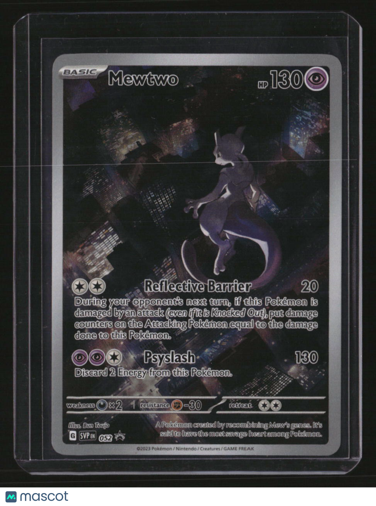 | *This is a Single Trading Card* | *Discounts are not available on Single Trading Cards* | This is a nice example of a SV: Scarlet & Violet Promo Cards #052 Mewtwo Promo,Holo. Please check out our other listings for more great cards. Thank you for your interest in one of our cards!!! Prior to making any bids/purchases, I would kindly ask you to read the information below: Item Condition Please see the provided pictures for the condition of the card or item, pictures of the front and back are provided for your review. We cannot accommodate requests for additional pictures. Any notable flaws or damage to this item will be noted in this listing. Please use the attached photos provided for your own assessment. Graded card cases may come with some minor wear/tear, surface scratch, chipped, or blemish. There are no partial refunds or returns because of the case condition. All single cards will come in protective cases. If you purchase a listing that's sold as a lot it may come in snap cases or sealed in a team bag, and not all cards will be individually sleeved and top loaded in all lots. Raw cards are sold as such, with no guarantees of potential and/or expected grades. All cards are sold as is, with no returns or refunds.