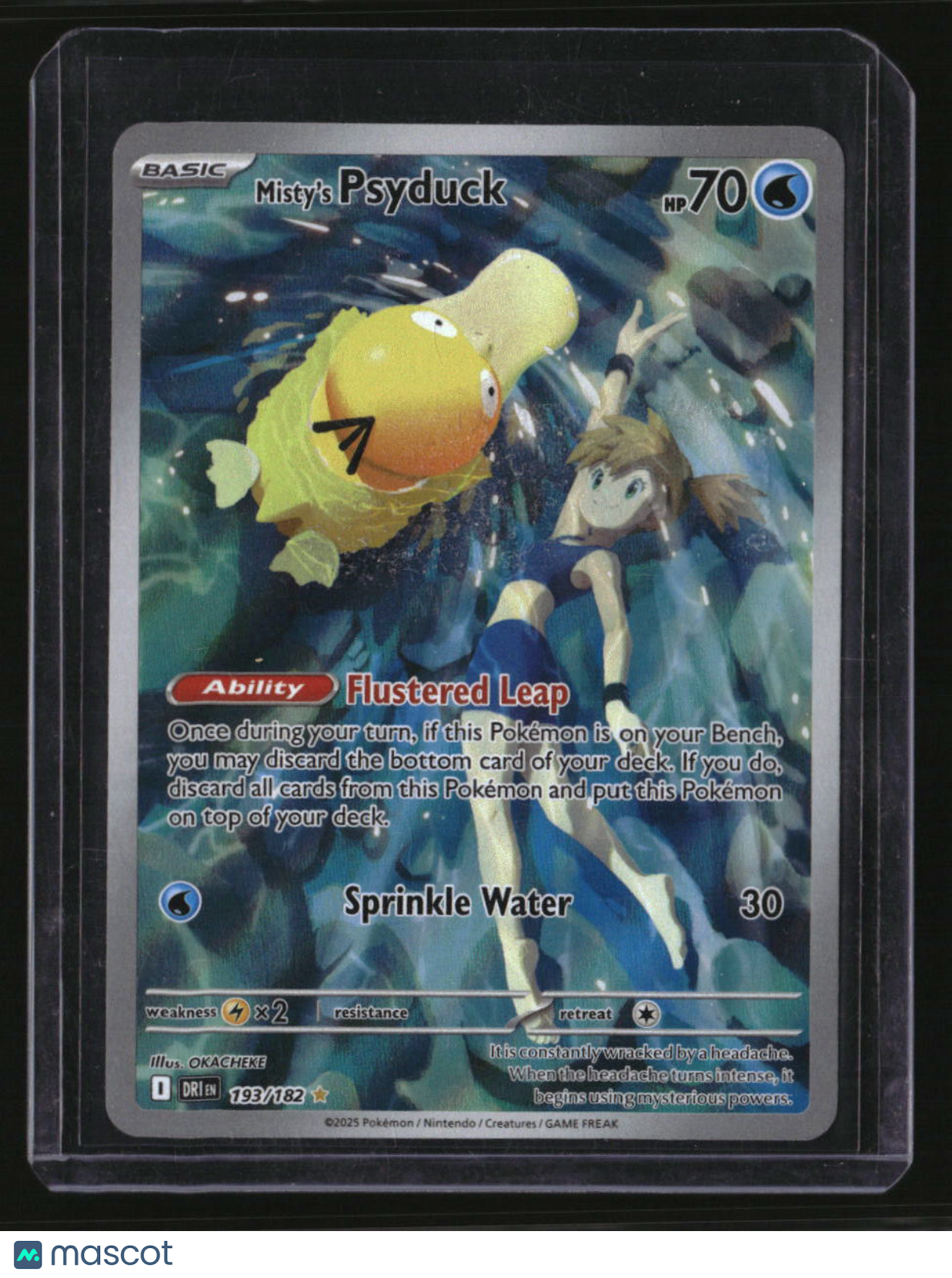 | *This is a Single Trading Card* | *Discounts are not available on Single Trading Cards* | This is a nice example of a SV10: Destined Rivals #193/182 Misty's Psyduck . Please check out our other listings for more great cards. Thank you for your interest in one of our cards!!! Prior to making any bids/purchases, I would kindly ask you to read the information below: Item Condition Please see the provided pictures for the condition of the card or item, pictures of the front and back are provided for your review. We cannot accommodate requests for additional pictures. Any notable flaws or damage to this item will be noted in this listing. Please use the attached photos provided for your own assessment. Graded card cases may come with some minor wear/tear, surface scratch, chipped, or blemish. There are no partial refunds or returns because of the case condition. All single cards will come in protective cases. If you purchase a listing that's sold as a lot it may come in snap cases or sealed in a team bag, and not all cards will be individually sleeved and top loaded in all lots. Raw cards are sold as such, with no guarantees of potential and/or expected grades. All cards are sold as is, with no returns or refunds. Listed With Mascot.