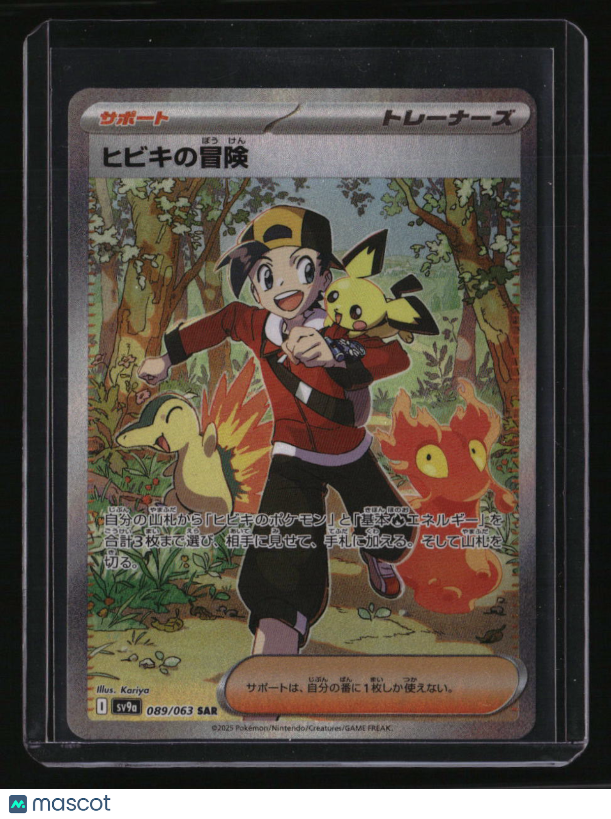| *This is a Single Trading Card* | *Discounts are not available on Single Trading Cards* | This is a nice example of a SV9a: Heat Wave Arena #089/063 Ethan's Adventure Japanese,Holo. Please check out our other listings for more great cards. Thank you for your interest in one of our cards!!! Prior to making any bids/purchases, I would kindly ask you to read the information below: Item Condition Please see the provided pictures for the condition of the card or item, pictures of the front and back are provided for your review. We cannot accommodate requests for additional pictures. Any notable flaws or damage to this item will be noted in this listing. Please use the attached photos provided for your own assessment. Graded card cases may come with some minor wear/tear, surface scratch, chipped, or blemish. There are no partial refunds or returns because of the case condition. All single cards will come in protective cases. If you purchase a listing that's sold as a lot it may come in snap cases or sealed in a team bag, and not all cards will be individually sleeved and top loaded in all lots. Raw cards are sold as such, with no guarantees of potential and/or expected grades. All cards are sold as is, with no returns or refunds. Listed With Mascot.
