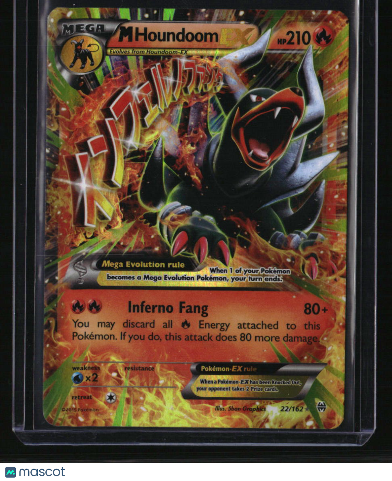 | *This is a Single Trading Card* | *Discounts are not available on Single Trading Cards* | This is a nice example of a XY - BREAKthrough #22/162 M Houndoom EX Ultra Rare. Please check out our other listings for more great cards. Thank you for your interest in one of our cards!!! Prior to making any bids/purchases, I would kindly ask you to read the information below: Item Condition Please see the provided pictures for the condition of the card or item, pictures of the front and back are provided for your review. We cannot accommodate requests for additional pictures. Any notable flaws or damage to this item will be noted in this listing. Please use the attached photos provided for your own assessment. Graded card cases may come with some minor wear/tear, surface scratch, chipped, or blemish. There are no partial refunds or returns because of the case condition. All single cards will come in protective cases. If you purchase a listing that's sold as a lot it may come in snap cases or sealed in a team bag, and not all cards will be individually sleeved and top loaded in all lots. Raw cards are sold as such, with no guarantees of potential and/or expected grades. All cards are sold as is, with no returns or refunds. Listed With Mascot.